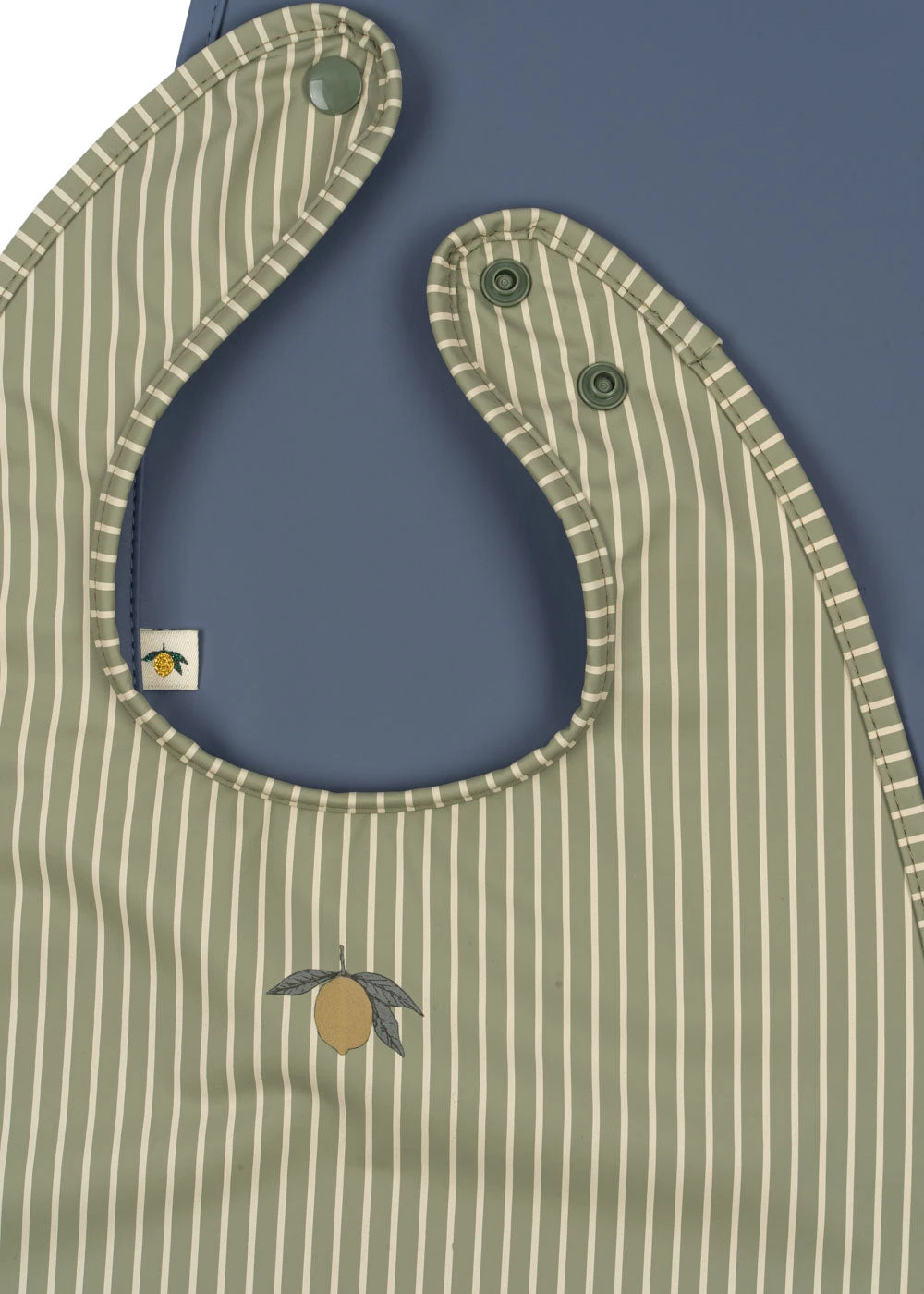Lot de deux bavoirs. Des compagnons de table parfaits et faciles à nettoyer.