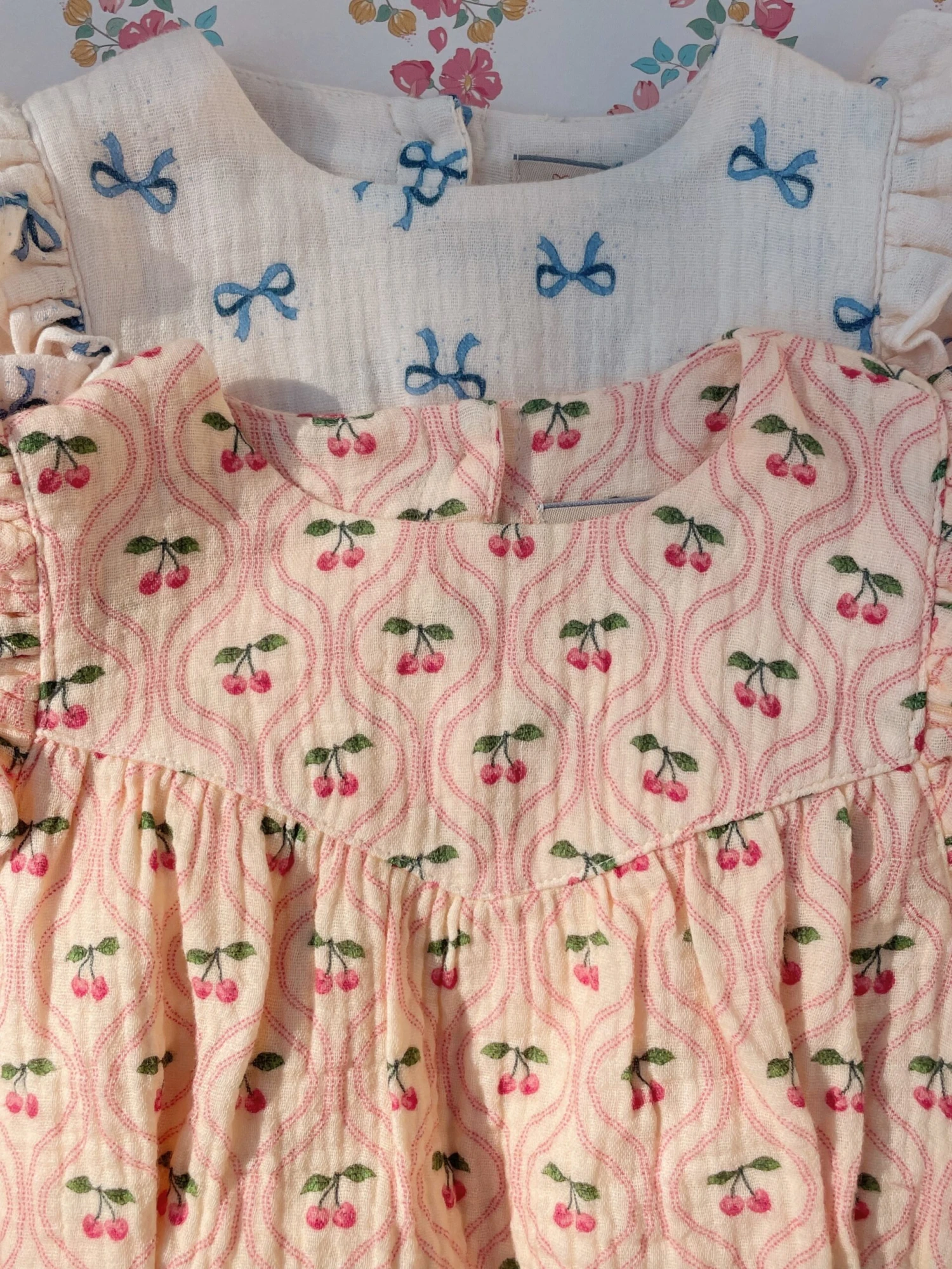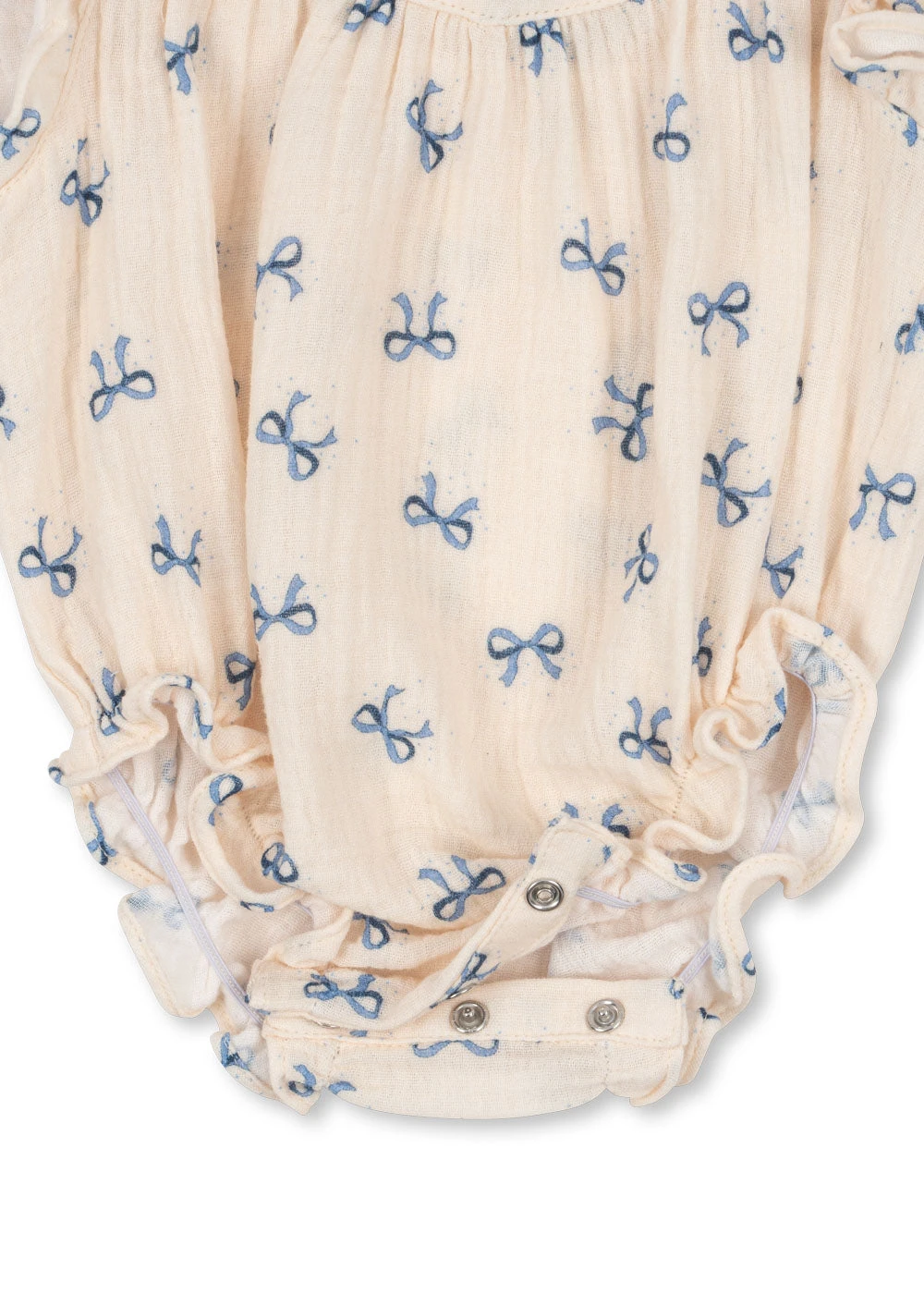 Barboteuse en mousseline douce, légère et respirante. Comprend des boutons-pression à l’ouverture de jambe pour un habillage facile.