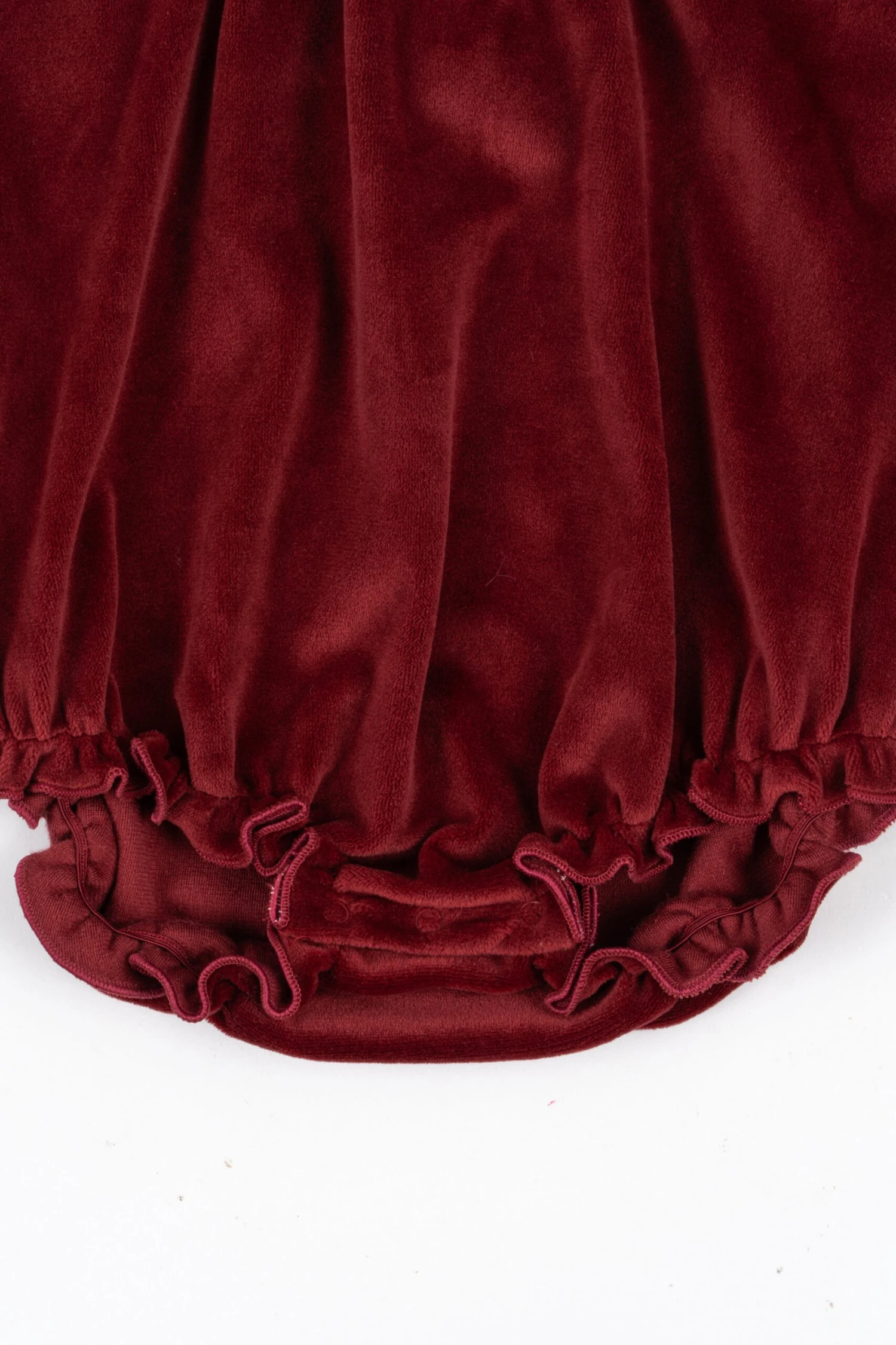 Combinaison en velours doux avec col en dentelle décorative. Ouverture des jambes avec boutons-pression pour un enfilage facile.