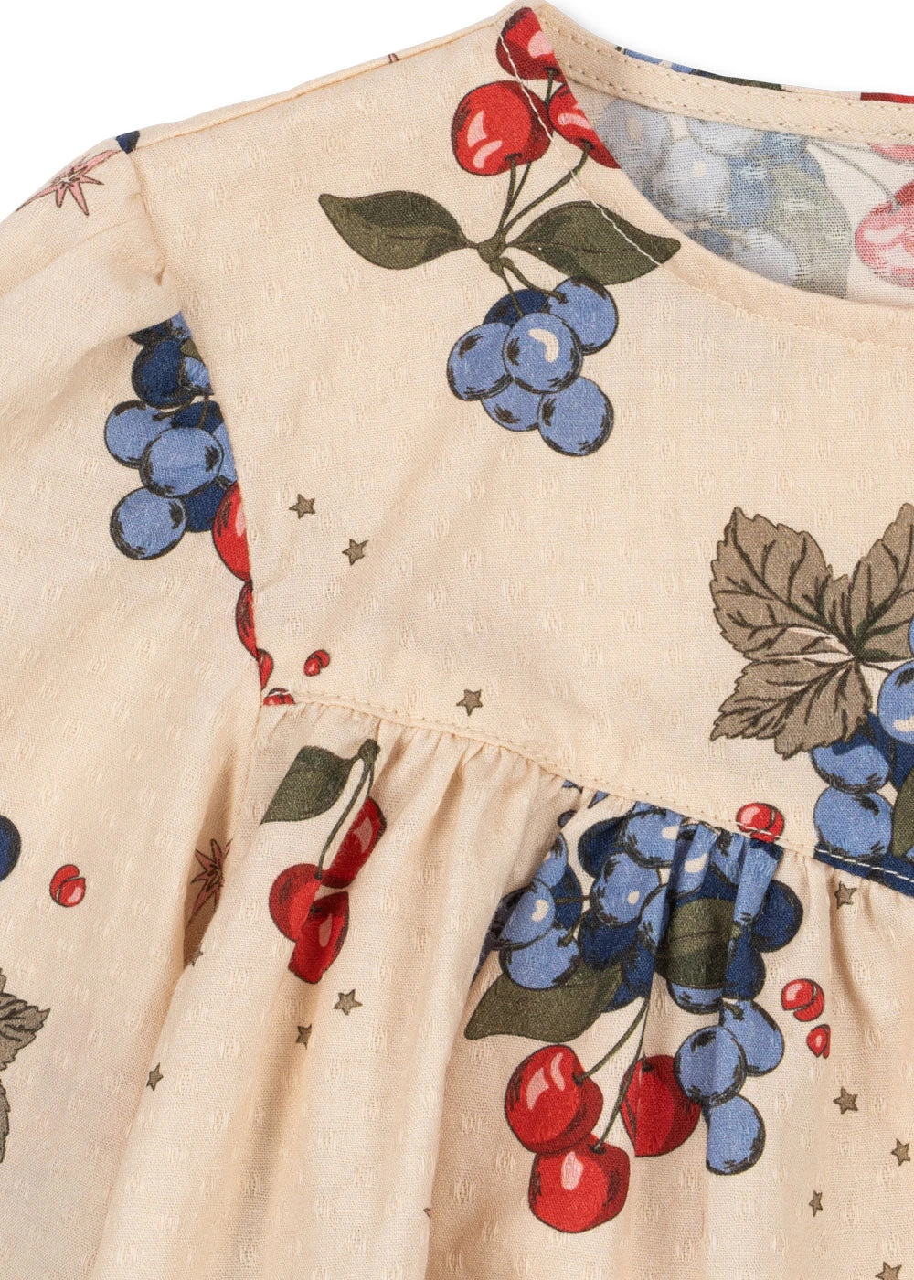 Coupe ample avec manches légèrement bouffantes et poignets fins froncés.