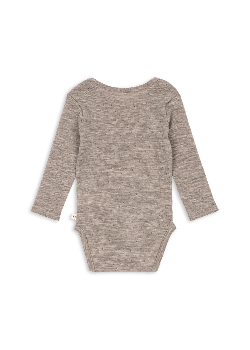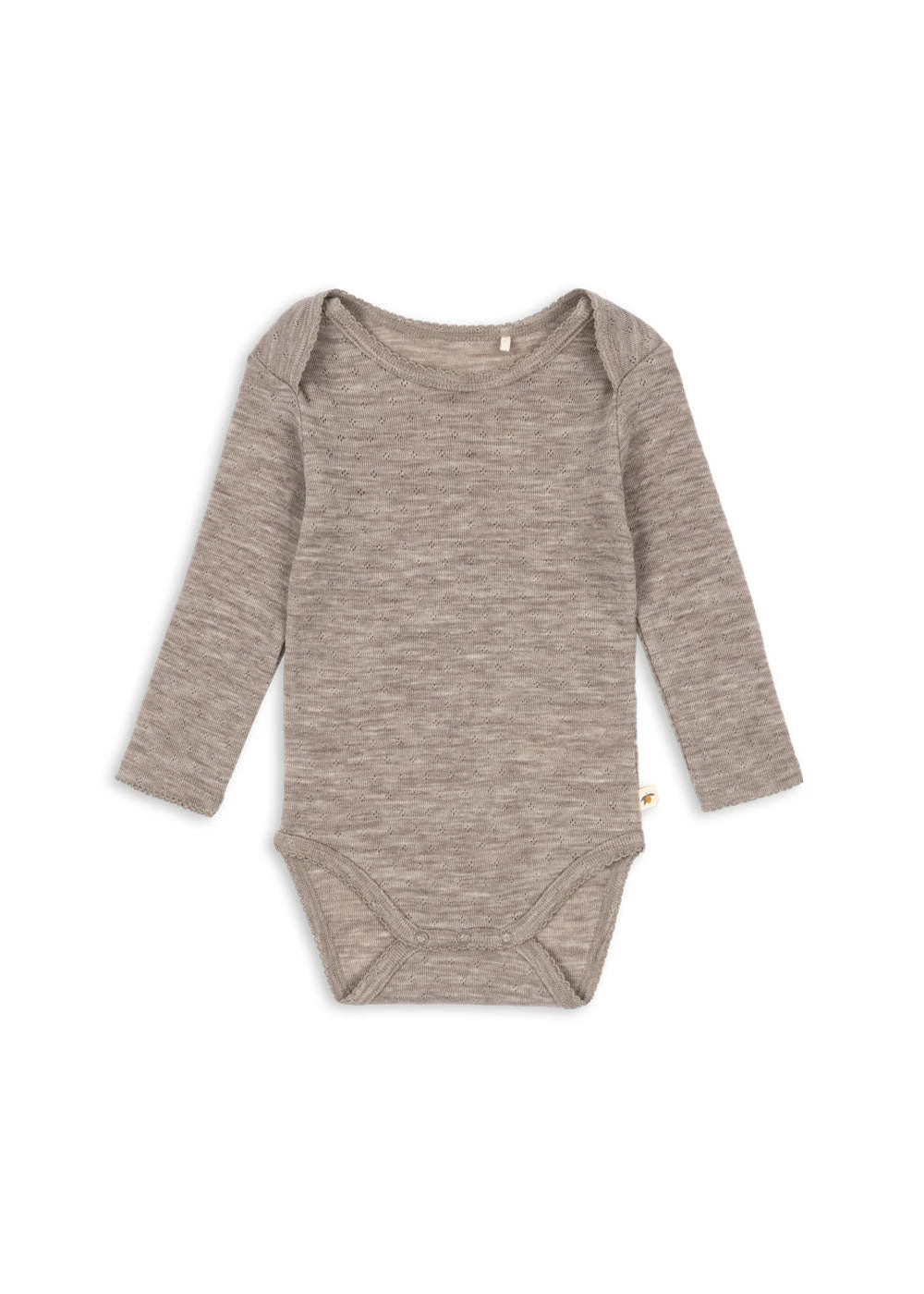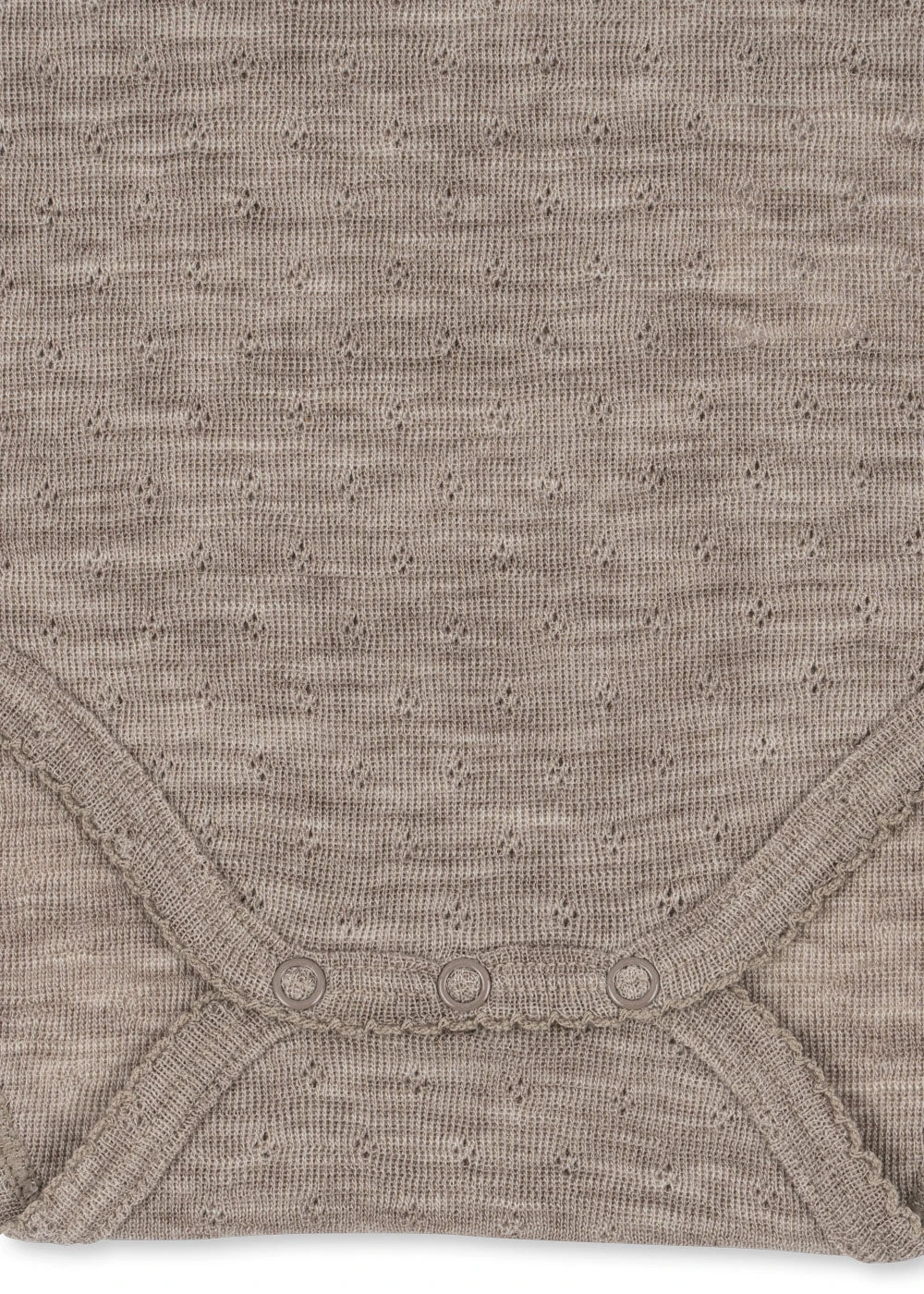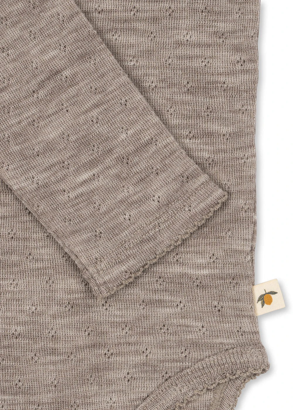 Notre collection Uma est une ligne d’articles en laine parfaits pour les petits. Conçu pour être porté comme une couche de base chaude en 100% laine mérinos la plus douce, ce body est doté d’une fermeture enveloppante pratique, d’une fermeture à bouton-pression, de bords à picots et d’un motif décoratif en pointelle sur toute la surface.