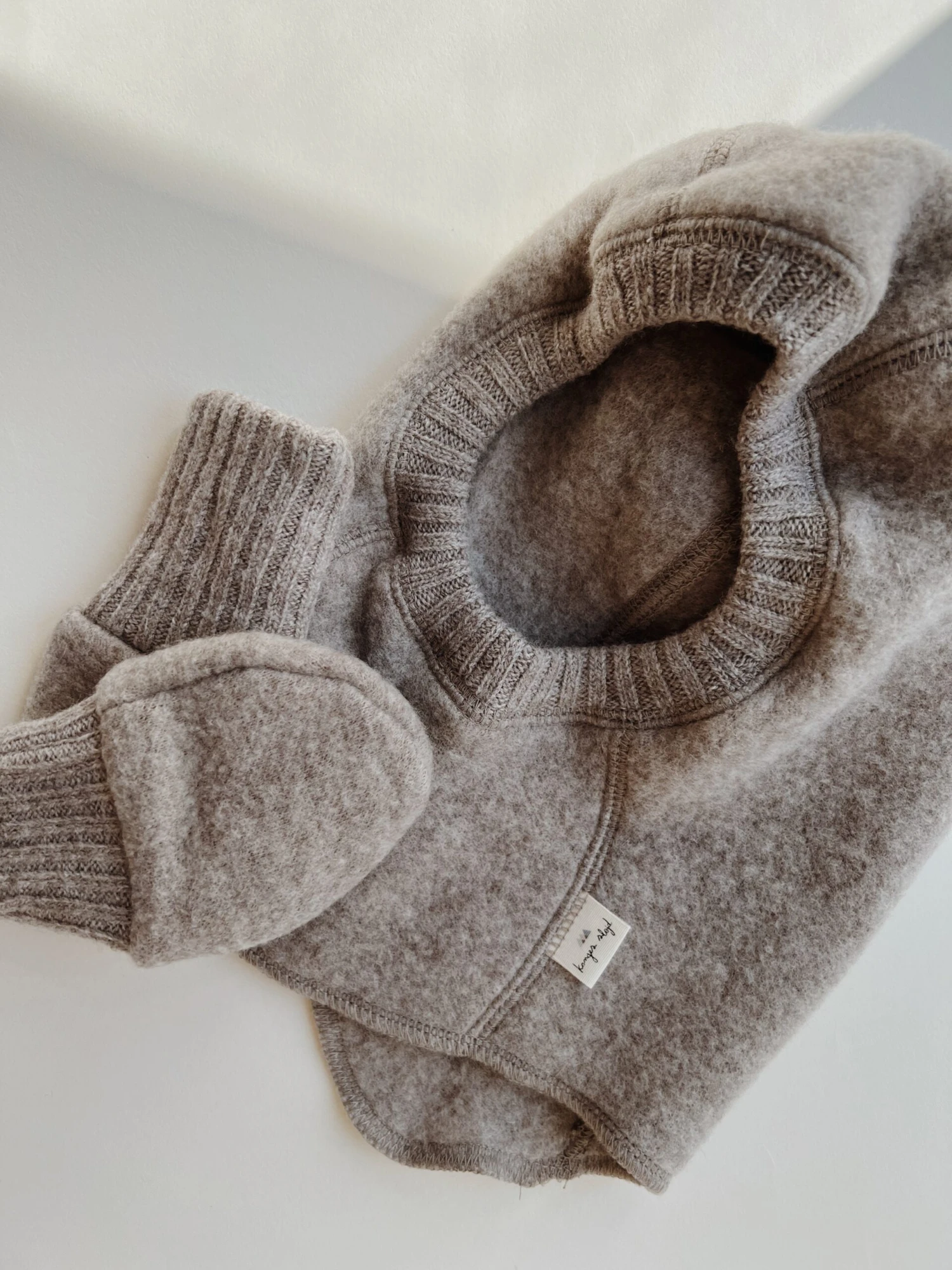 Cagoule en 100 % molleton de laine.