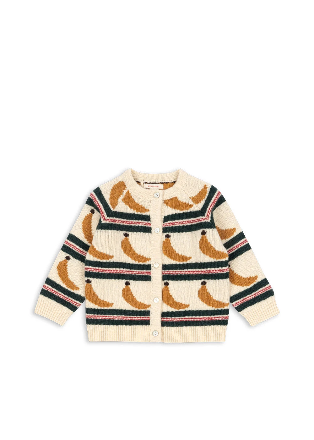 Modèle classique avec col rond, bords-côtes et boutons en nacre sur le devant.