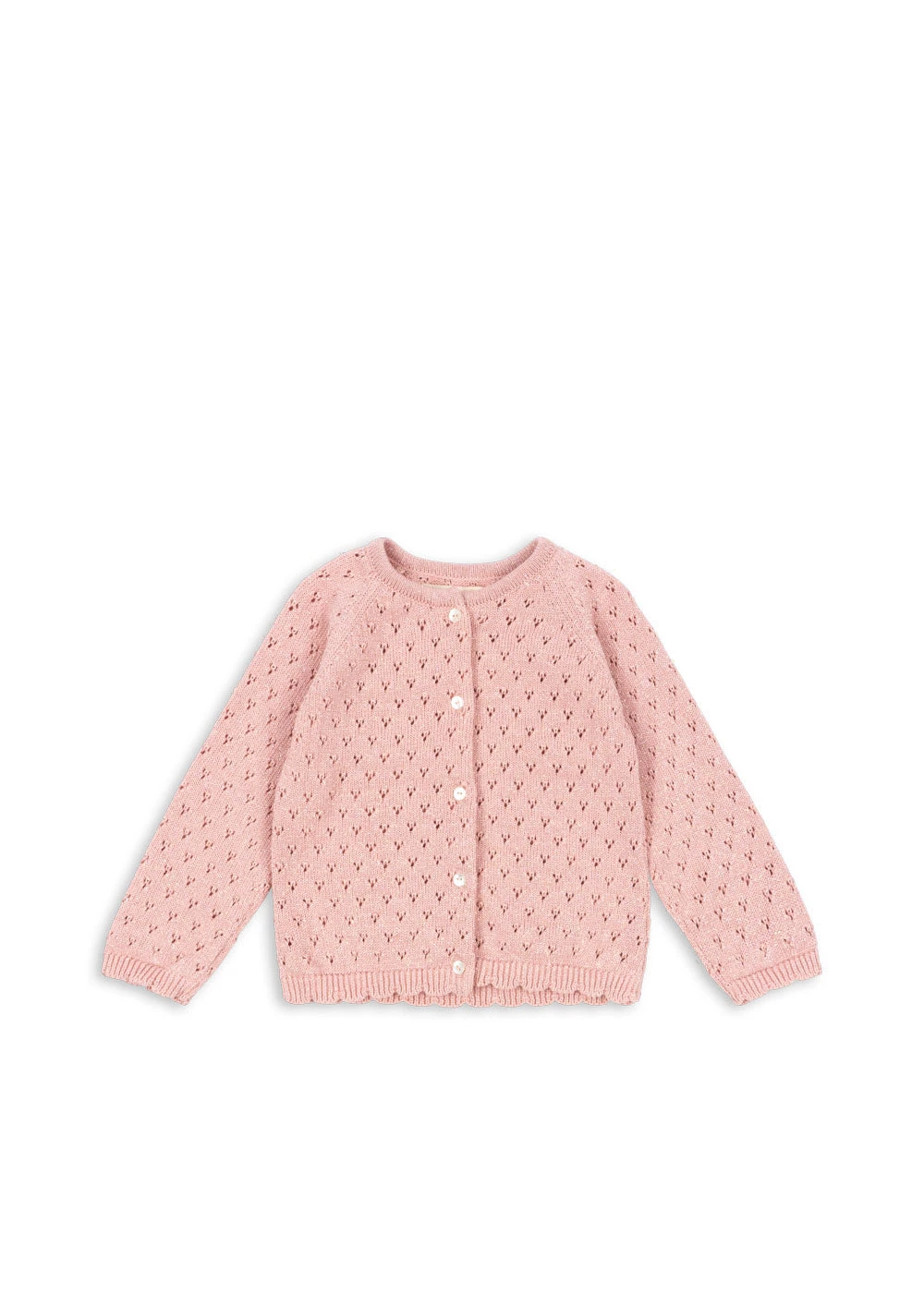 Cardigan léger avec un délicat motif à œillets. Finitions avec des bords-côtes classiques et une fermeture boutonnée.