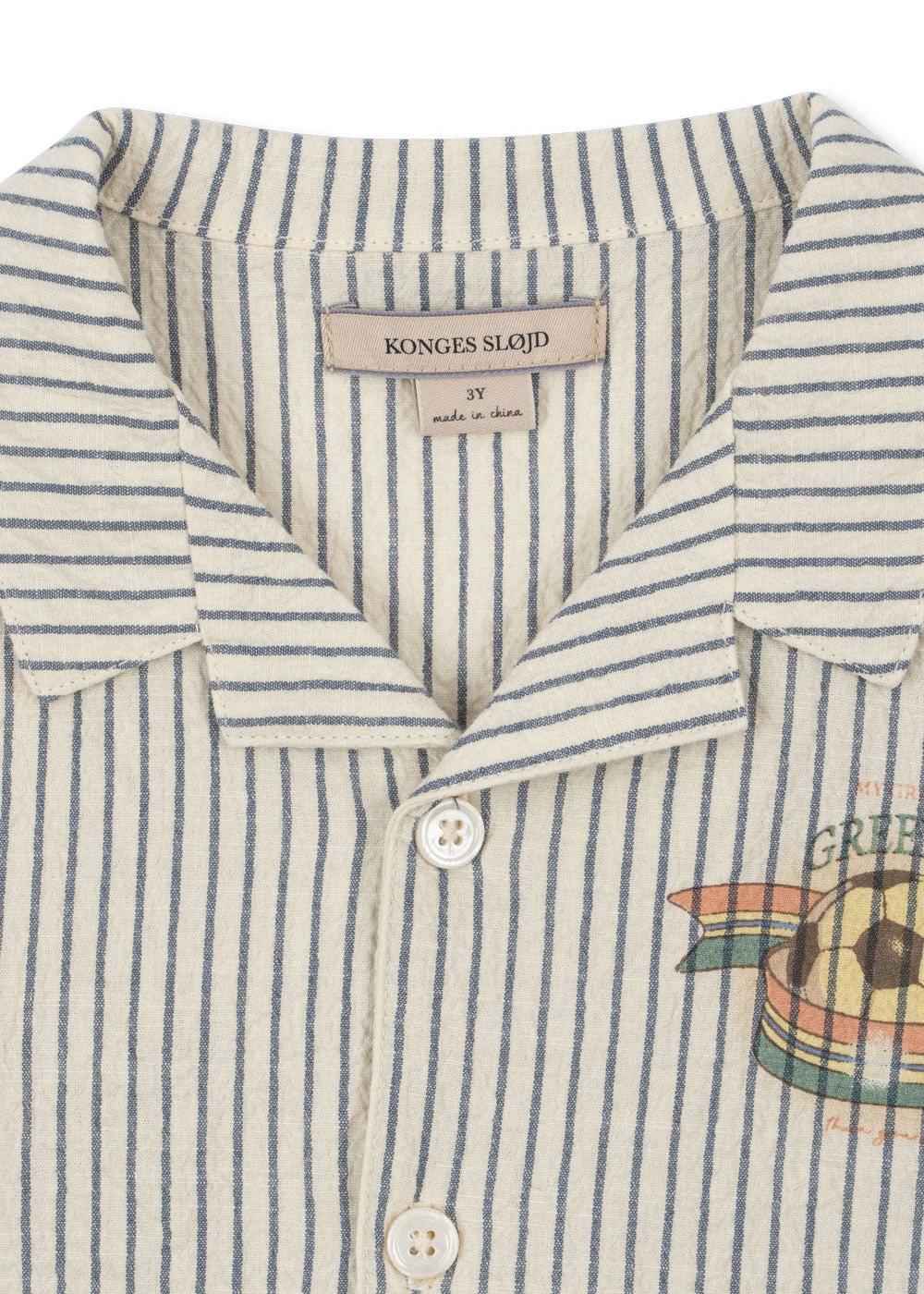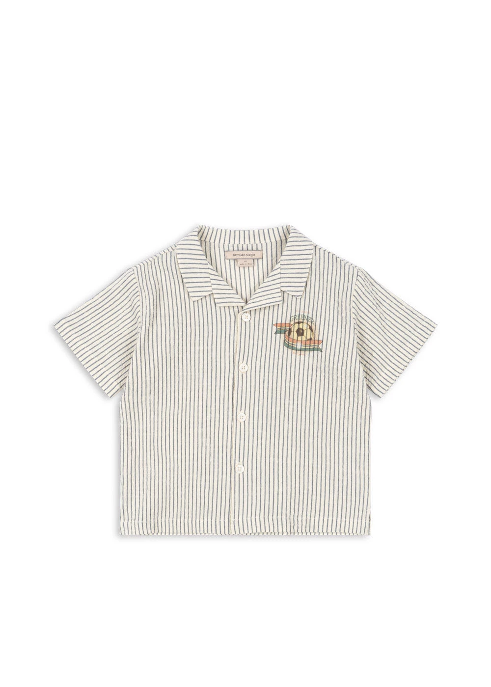 Chemise à manches courtes en seersucker doux. Conçue avec des détails classiques tels qu’un col régulier, une coupe droite et une fermeture à boutons sur le devant.