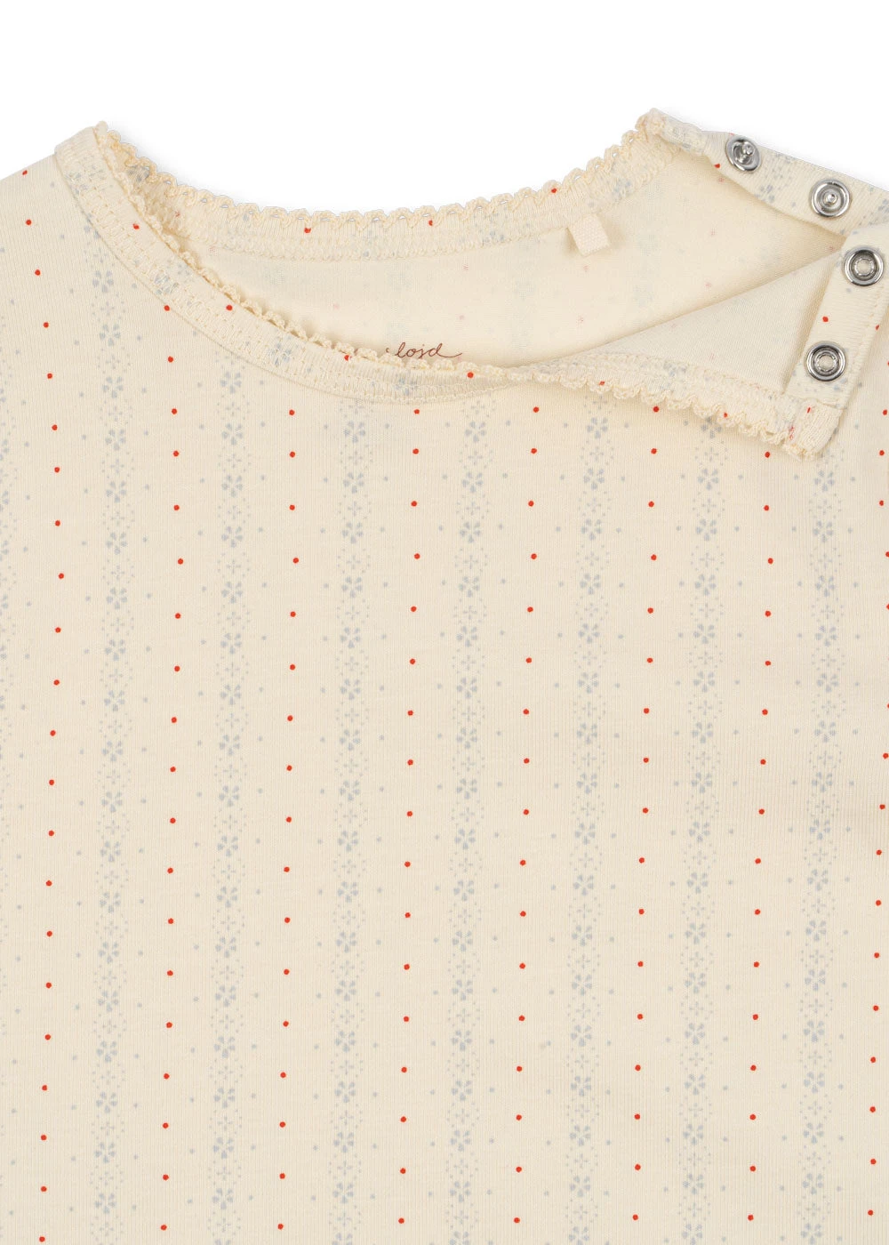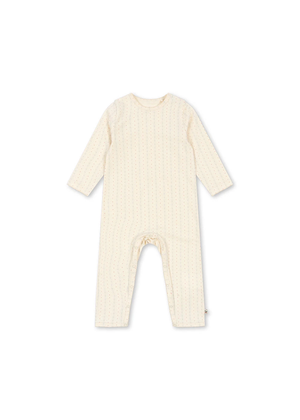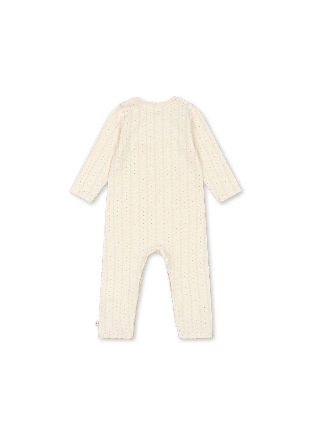 Grenouillère toute douce à manches longues. Dotée de boutons-pression à l’entrejambe pour faciliter l’habillage.