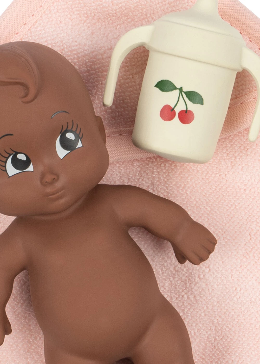 Ce petit compagnon est fabriqué en caoutchouc 100 % naturel et est livré avec sa petite serviette et son biberon.