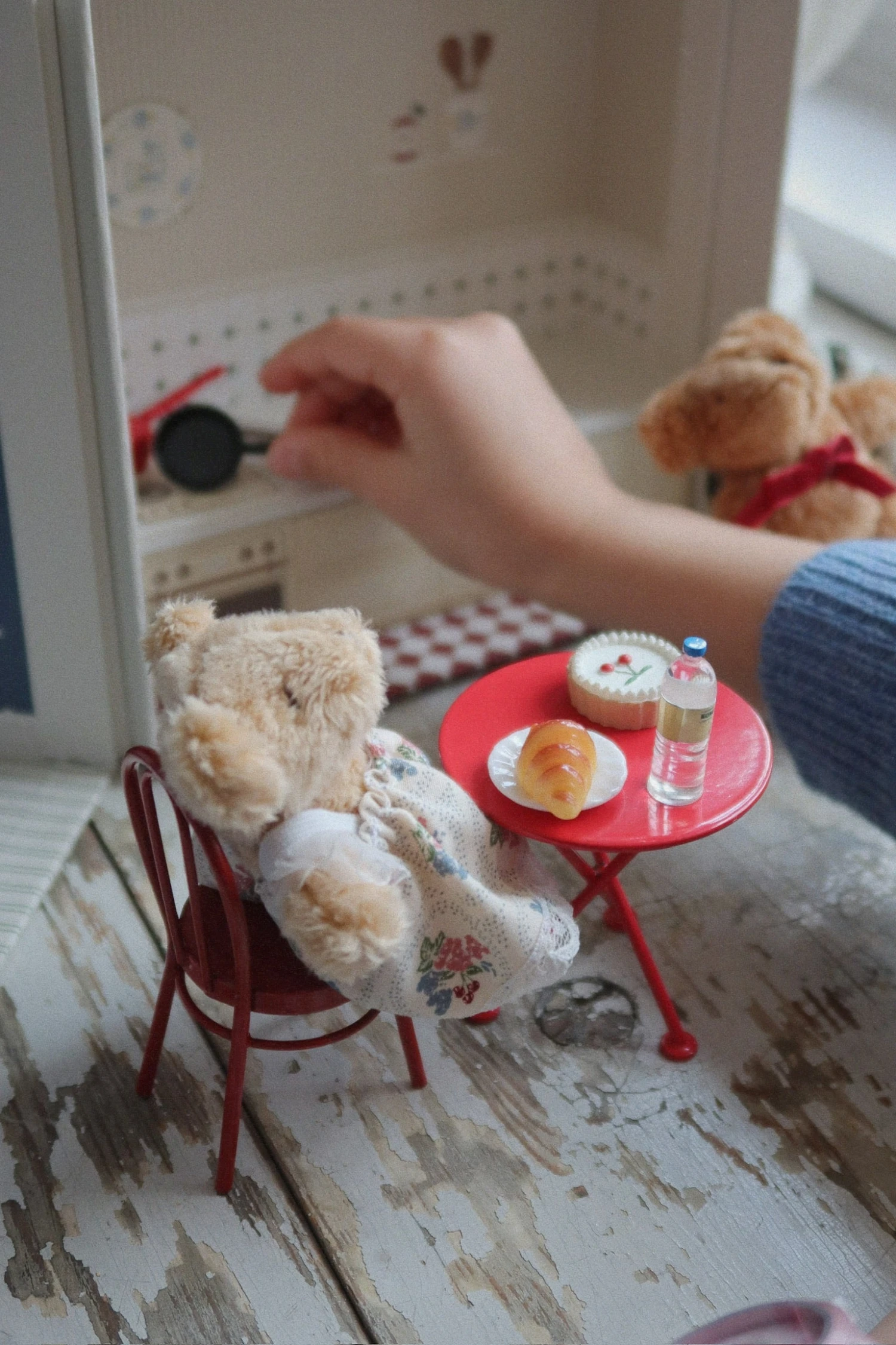 Tout petit et tout mignon ! Cette petite maisonnette est faite pour vos nouveaux petits oursons préférés. Comprenant une cuisine et une salle à manger, elle comprend une petite chaise, une table, une pâtisserie et des boissons préparées dans la cuisine. Inclut un petit ourson pour jouer.
