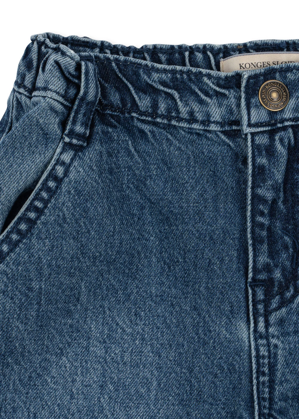 Jean classique ample avec élastique Ceinture, passants et braguette zippée.