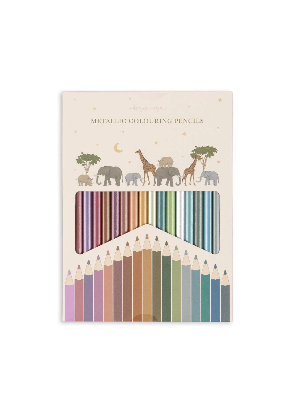 18 crayons de couleur métalliques conçus en forme de triangle.