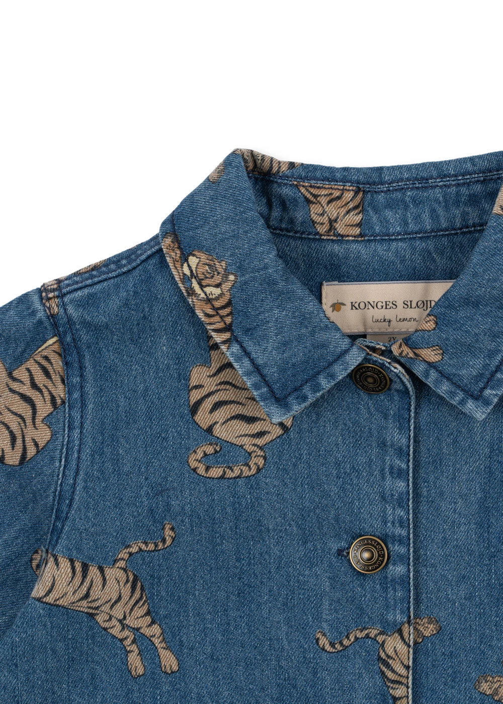 Veste en jean au design classique, avec fermeture à boutons en corne et col classique.