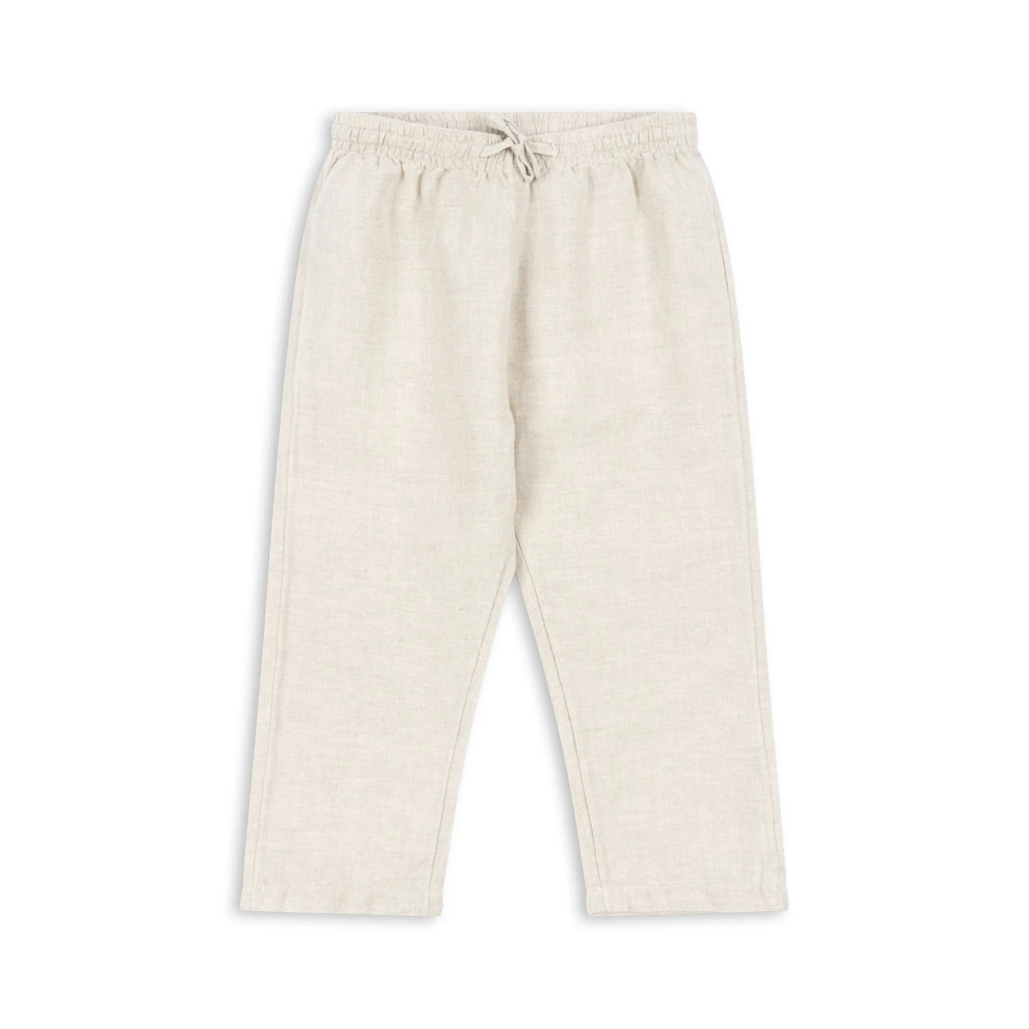 Pantalon conçu dans un mélange léger de lin et de coton, offrant une texture particulièrement douce.