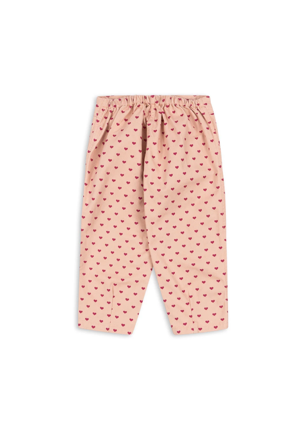 Pantalon en coton légèrement plus épais, coupe classique et taille élastique.