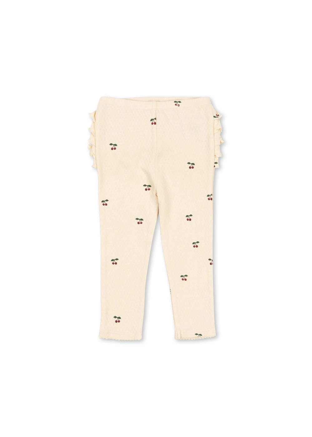 Pantalon en coton doux avec volants décoratifs et taille élastique confortable.