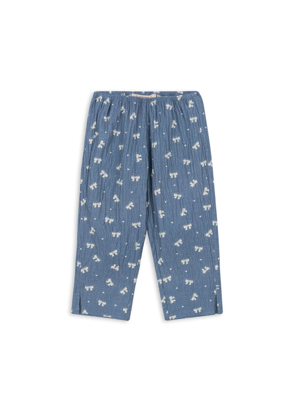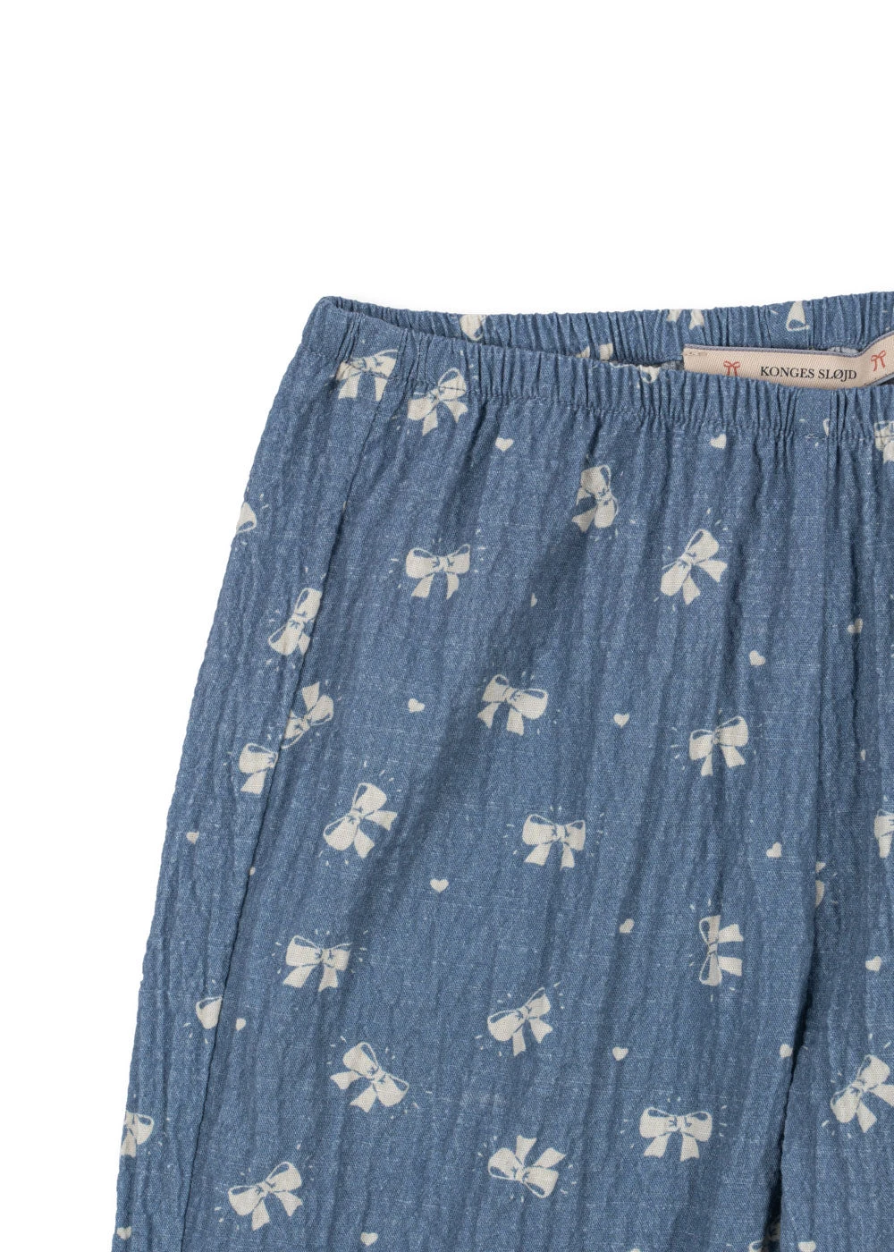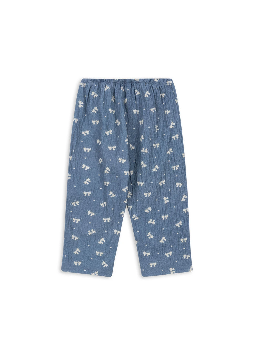 Pantalon doux à coupe droite et taille élastique. Confectionné en seersucker doux avec un joli effet froissé.