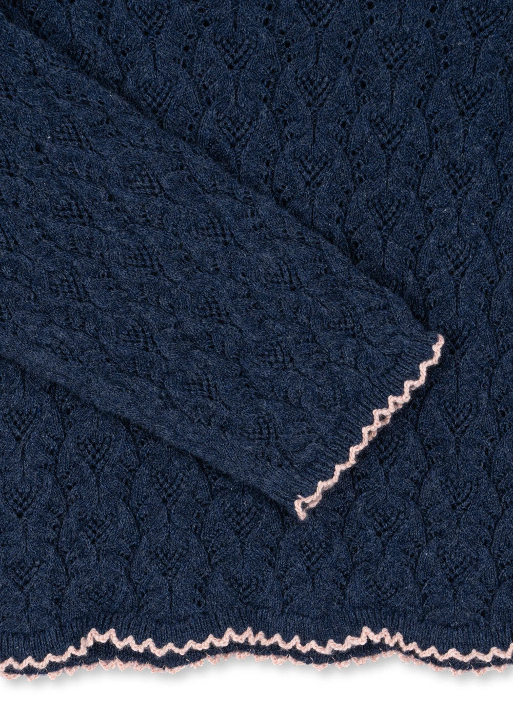 Haut en maille légère orné d’un motif ondulé décoratif et d’ourlets ondulés surpiqués. Fabriqué dans un doux mélange de coton, cachemire et laine.