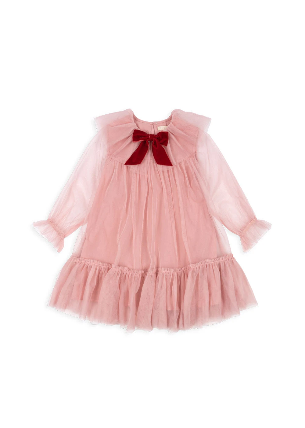 Robe en tulle doux avec col et nœud décoratif sur le devant.