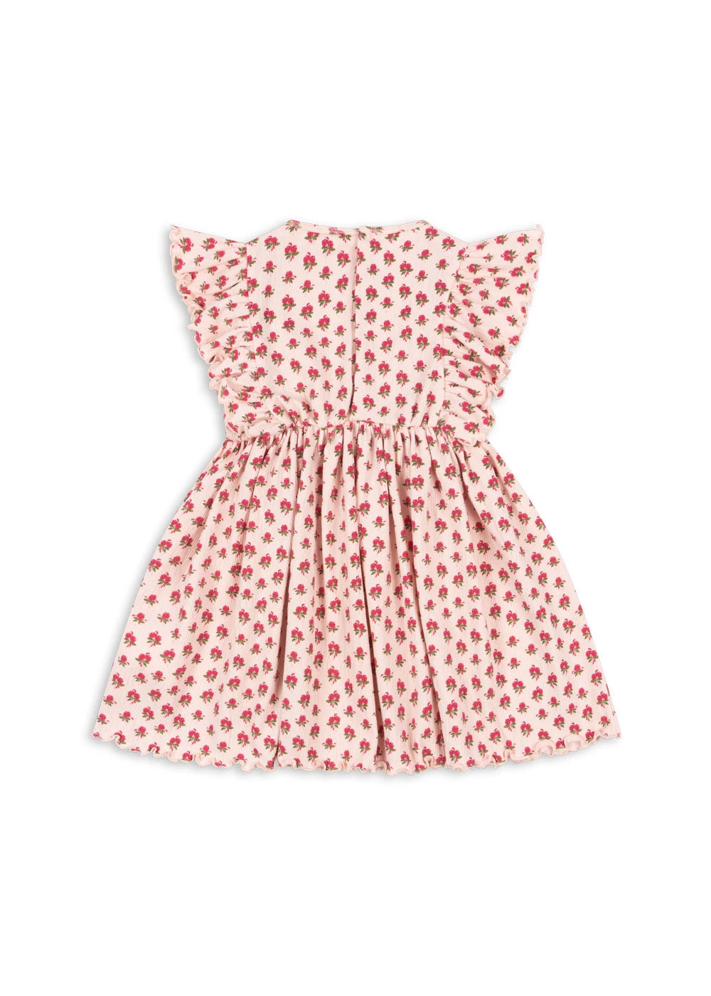 Robe en coton doux avec une taille cintrée et des détails à volants.