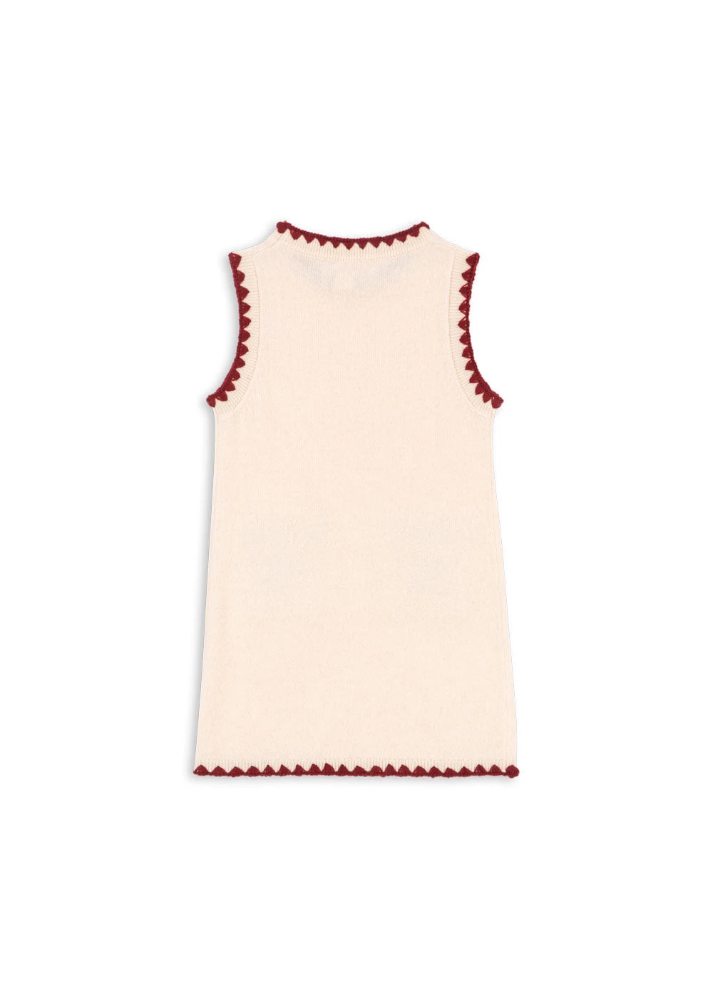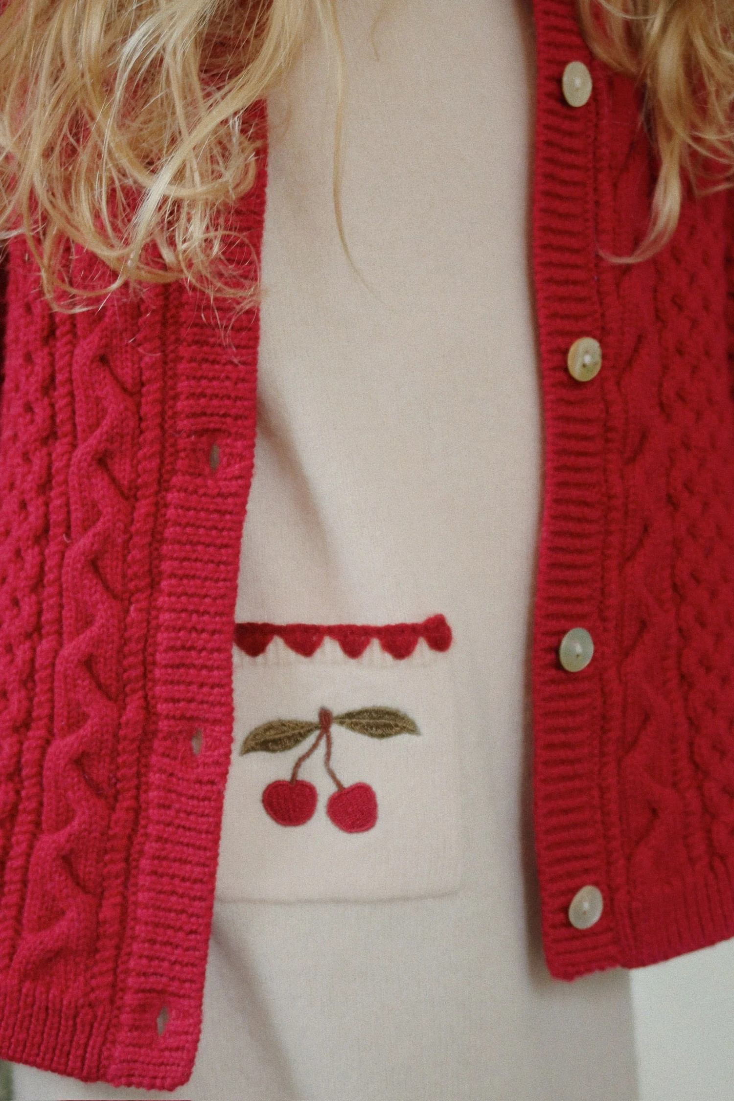 Robe en laine tricotée d’une qualité exceptionnellement douce et confortable, ornée d’une délicate broderie cerise. Avec des poches avant et une silhouette droite et ajustée.