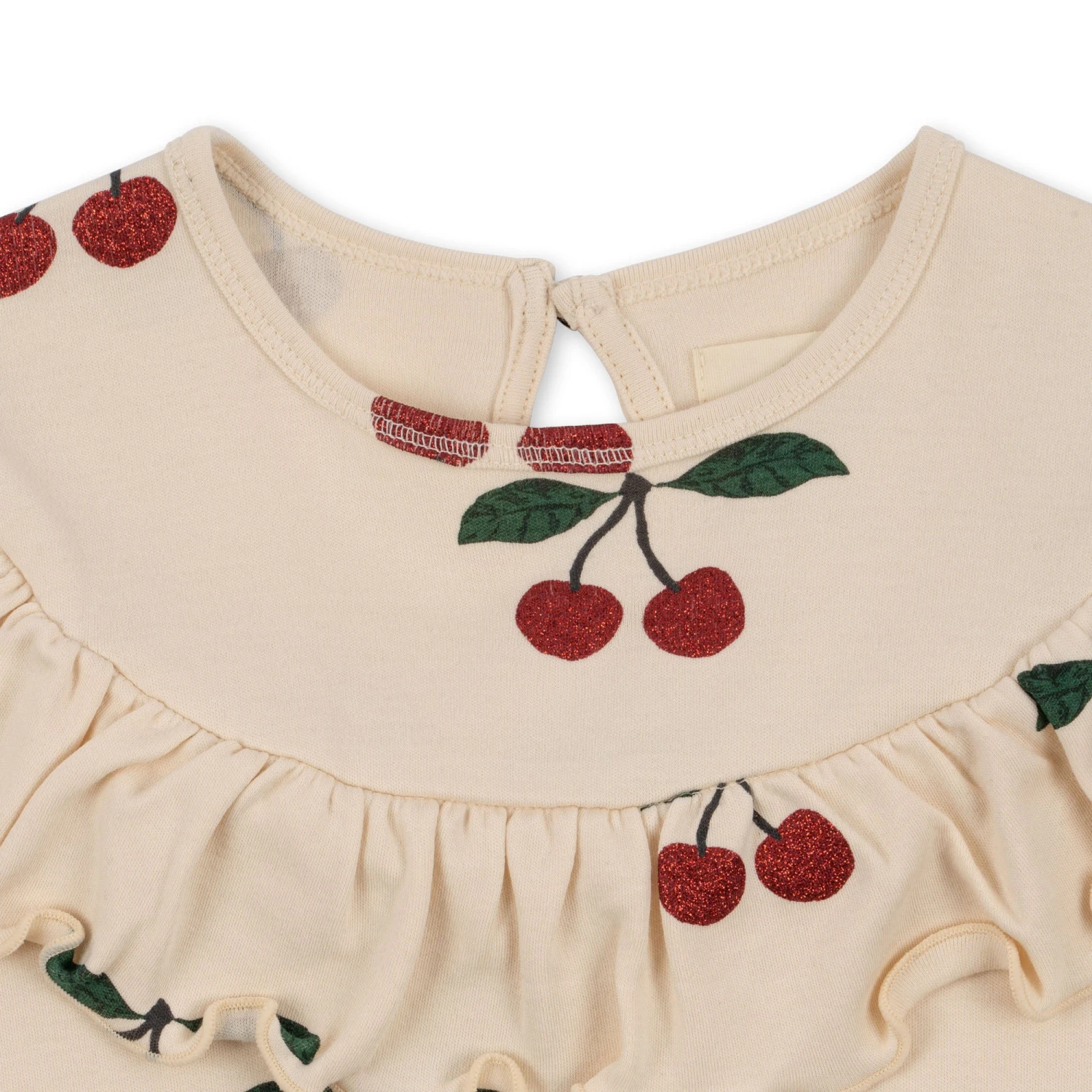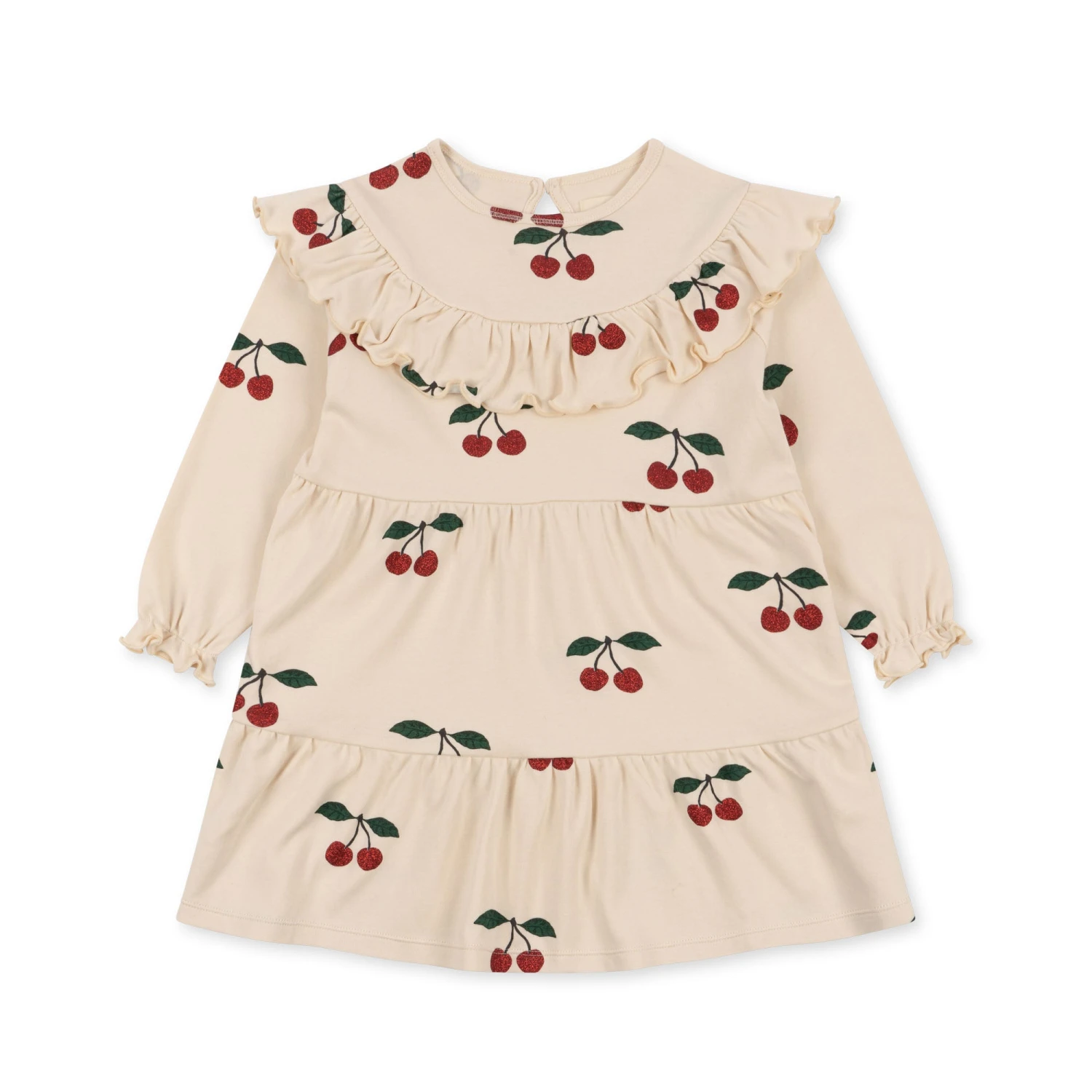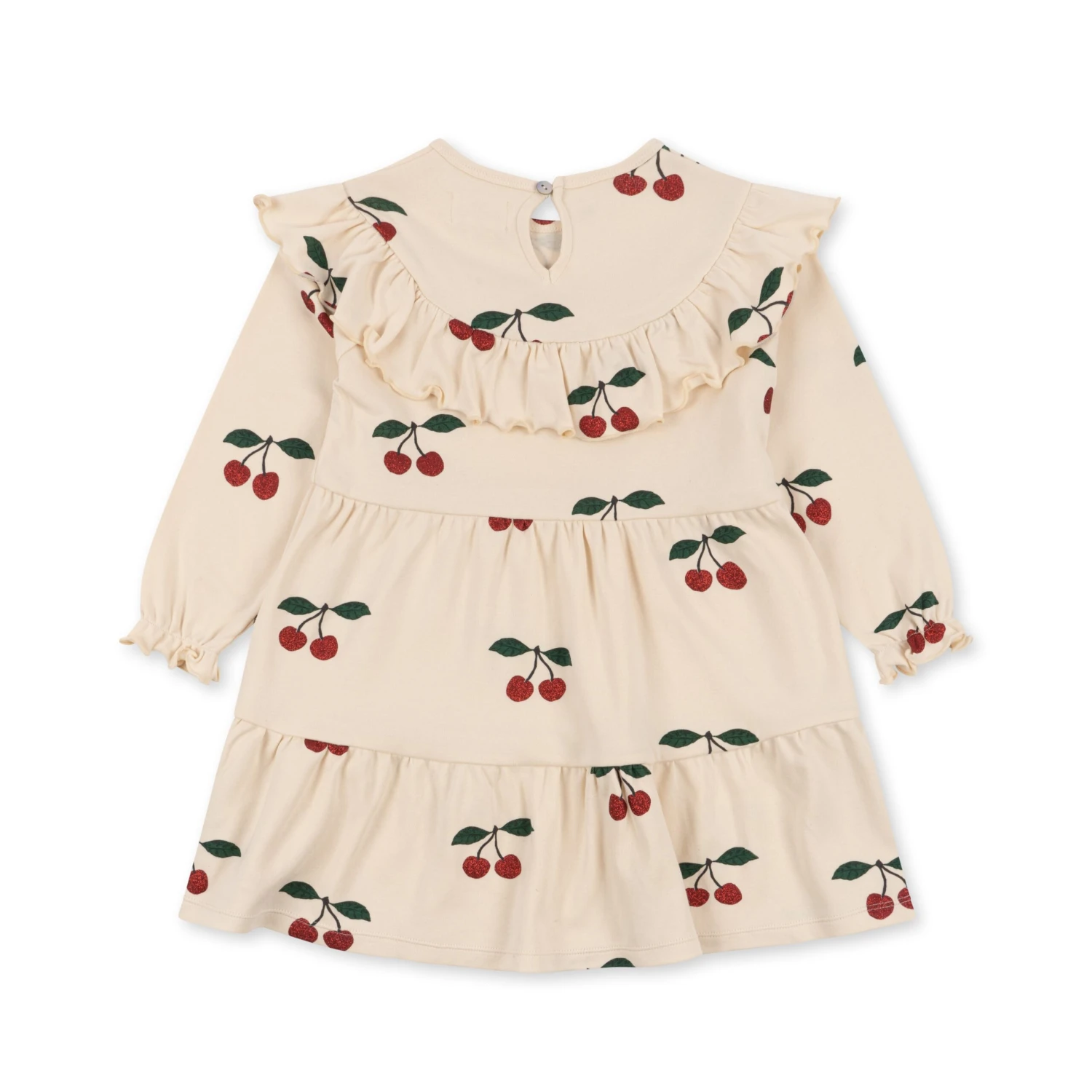 Robe en coton doux avec détails pailletés. Jupe à volants légèrement évasée.