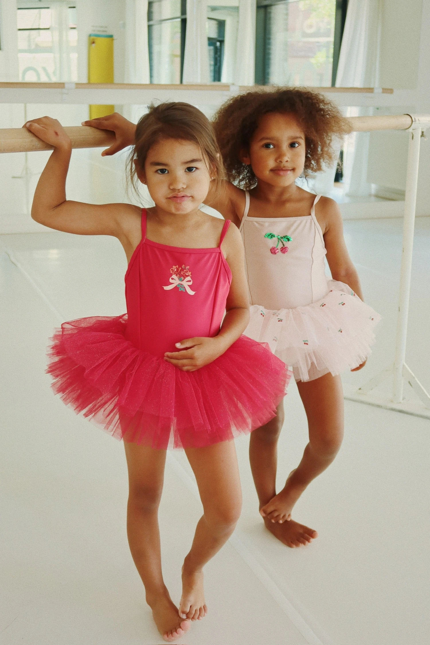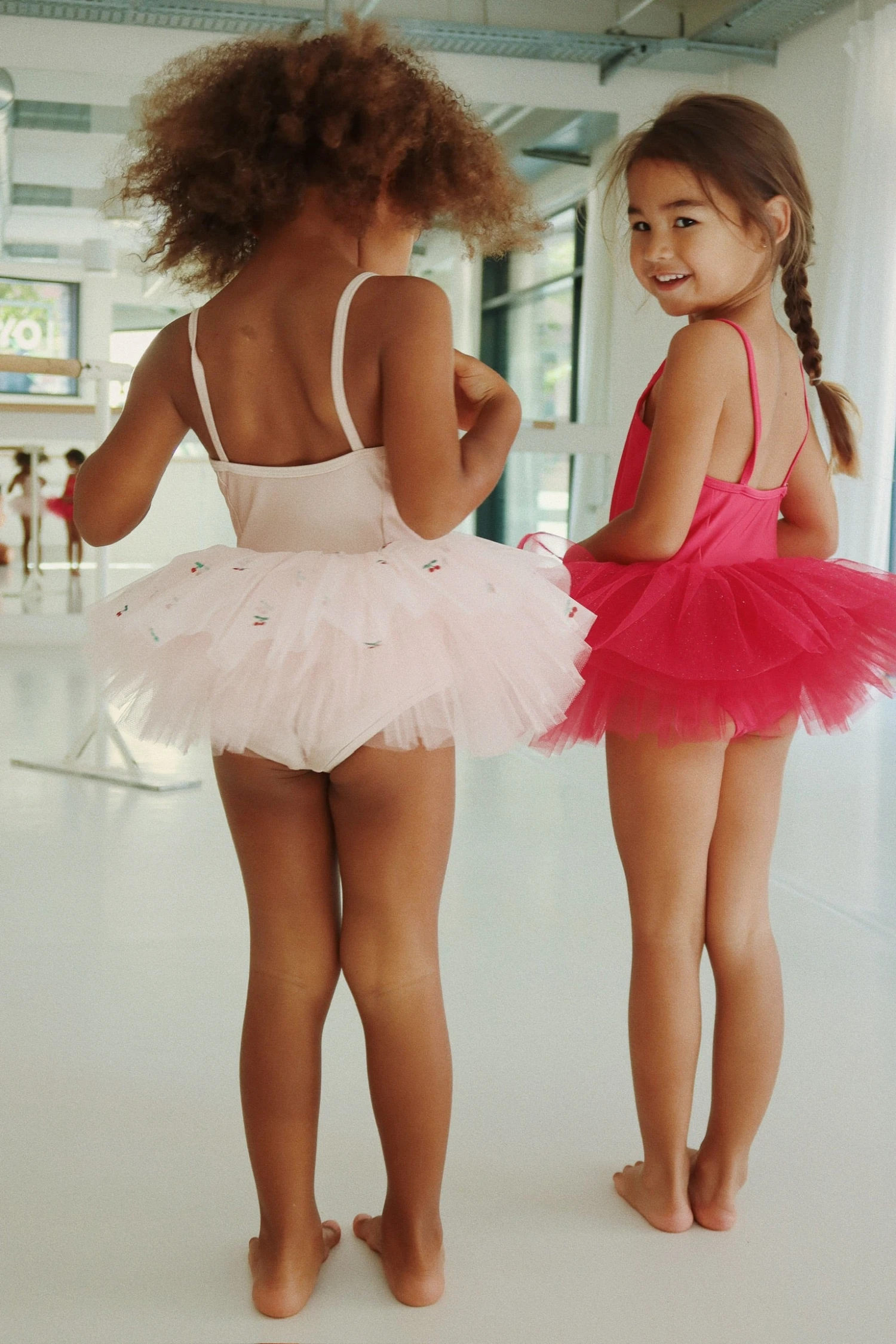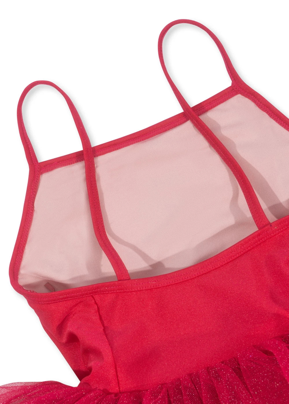 Robe tutu classique pour les petites ballerines. Conçue avec une jupe volumineuse en tulle qui est attachée à un costume ajusté dans un tissu extensible.