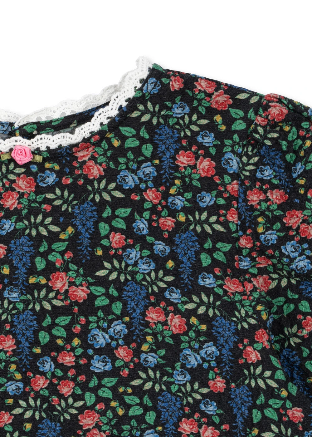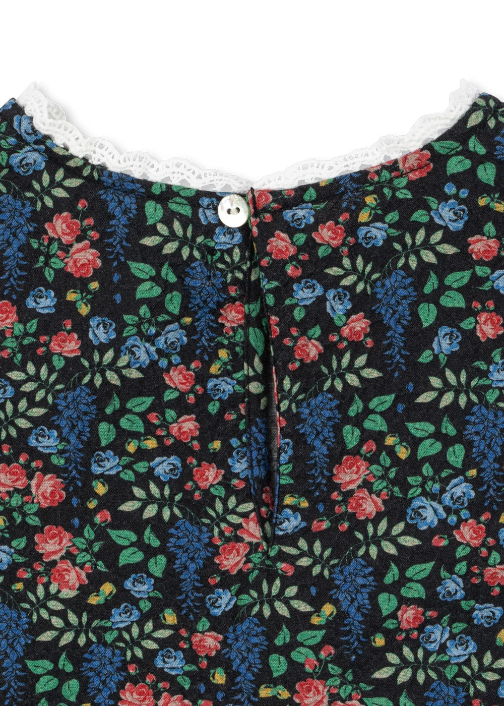 Robe en coton bio tout doux avec des manches bouffantes. Jupe évasée, ourlet en dentelle au col, taille marquée et plis décoratifs.