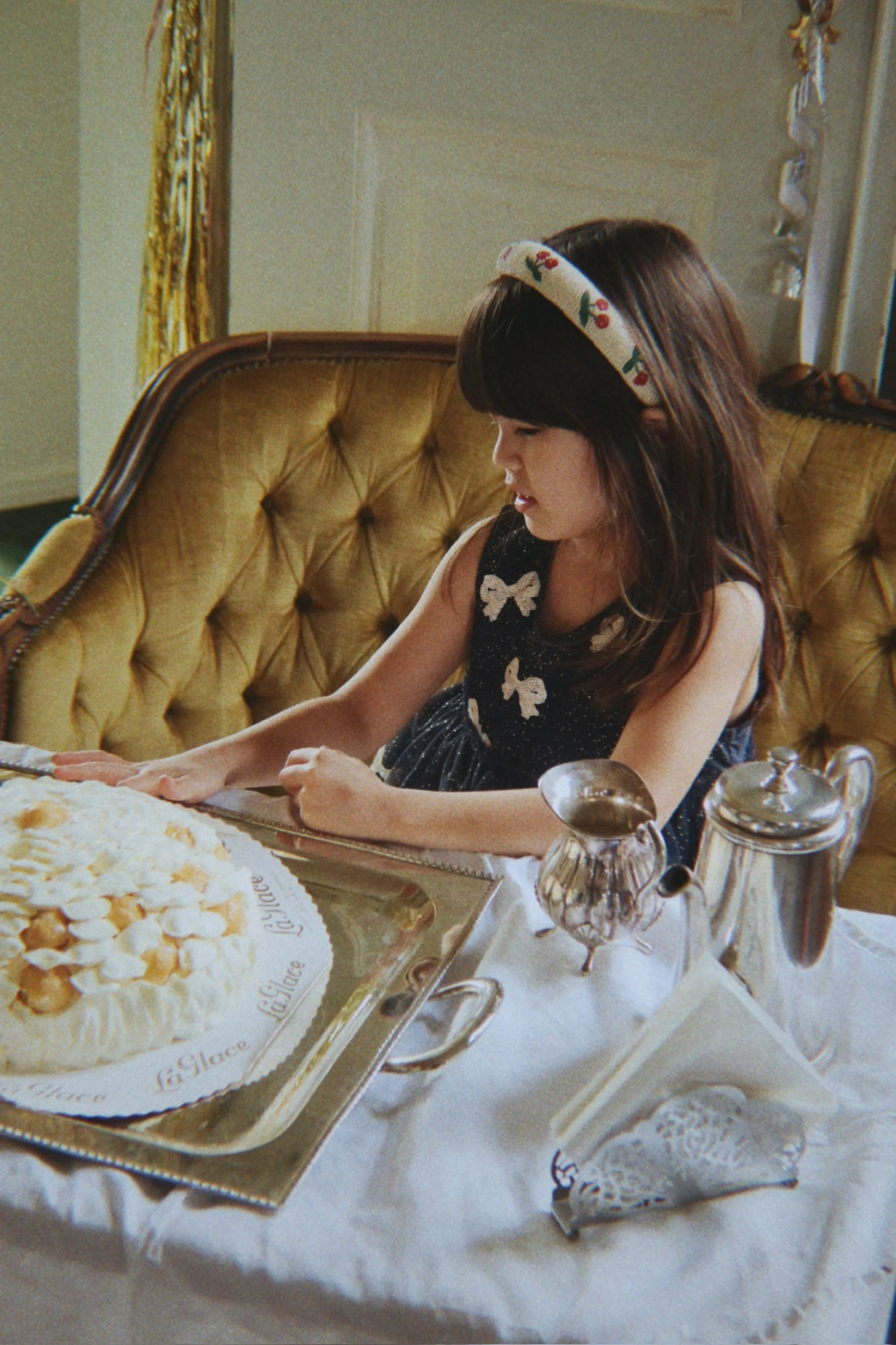 Robe en tulle ornée de nœuds à sequins et d’un effet scintillant sur l’ensemble.