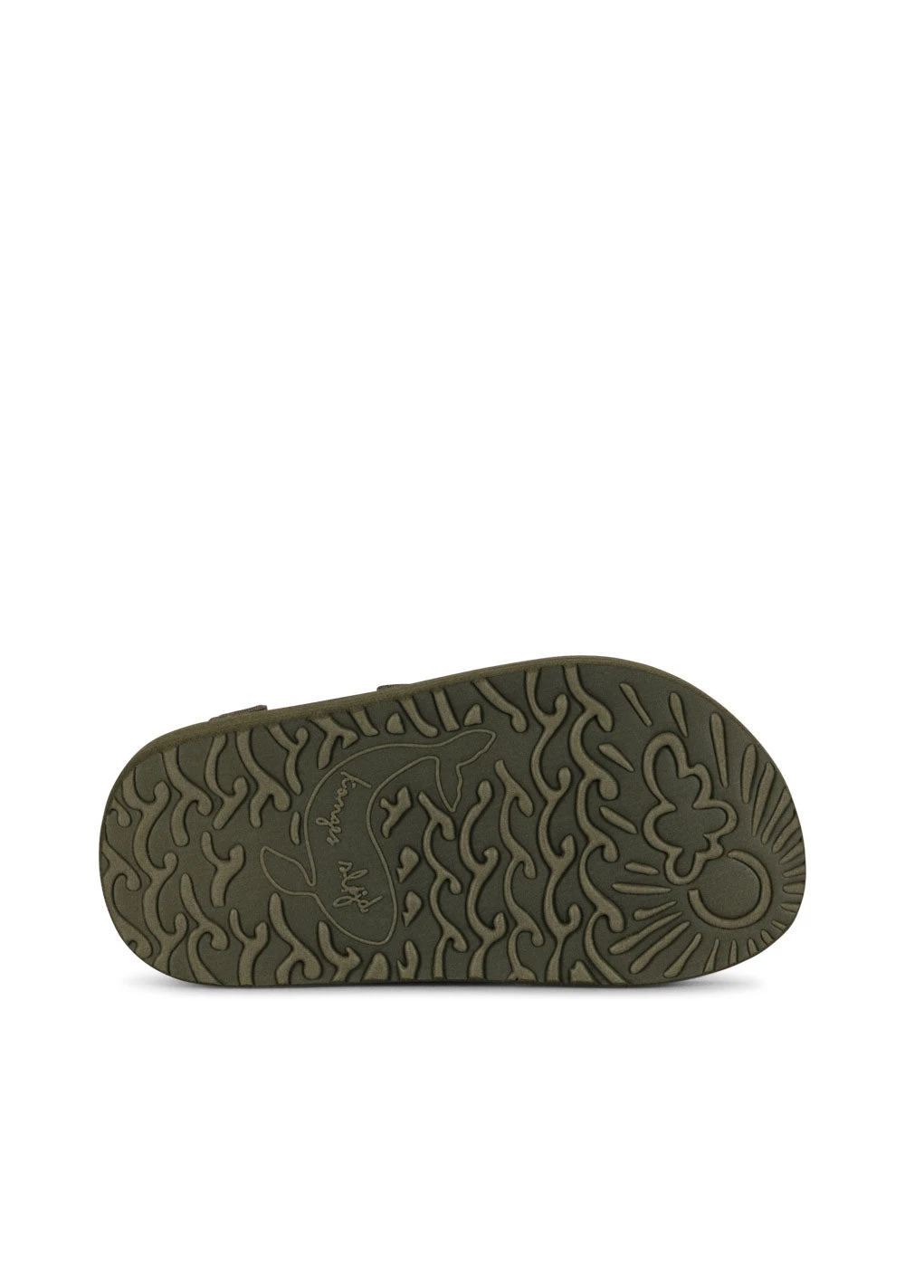 Sandales d’été avec fermeture velcro sur la cheville et l’avant du pied.