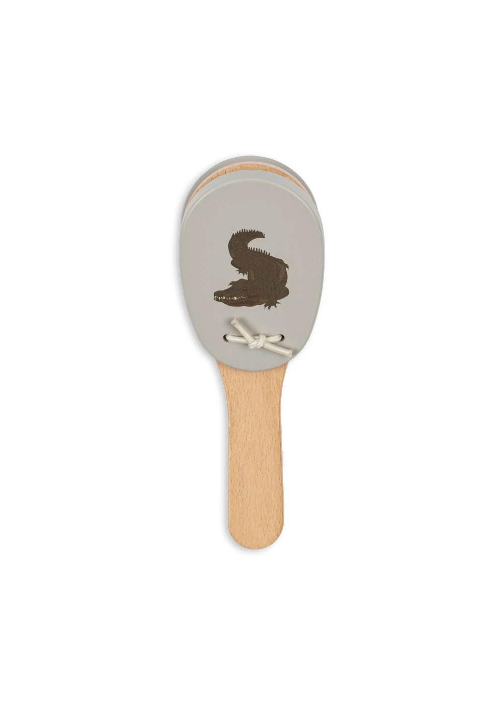 Un maracas, un tambourin, une castagnette, un xylophone et deux baguettes.