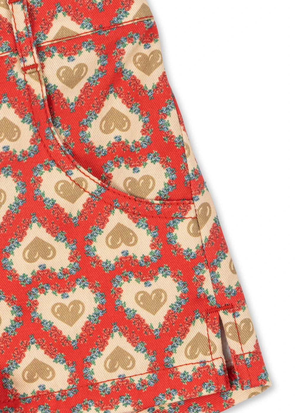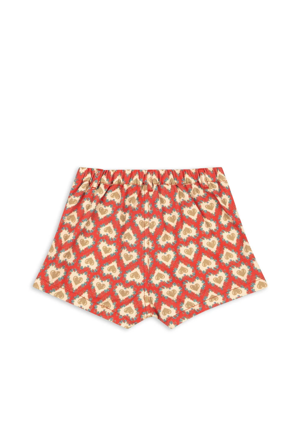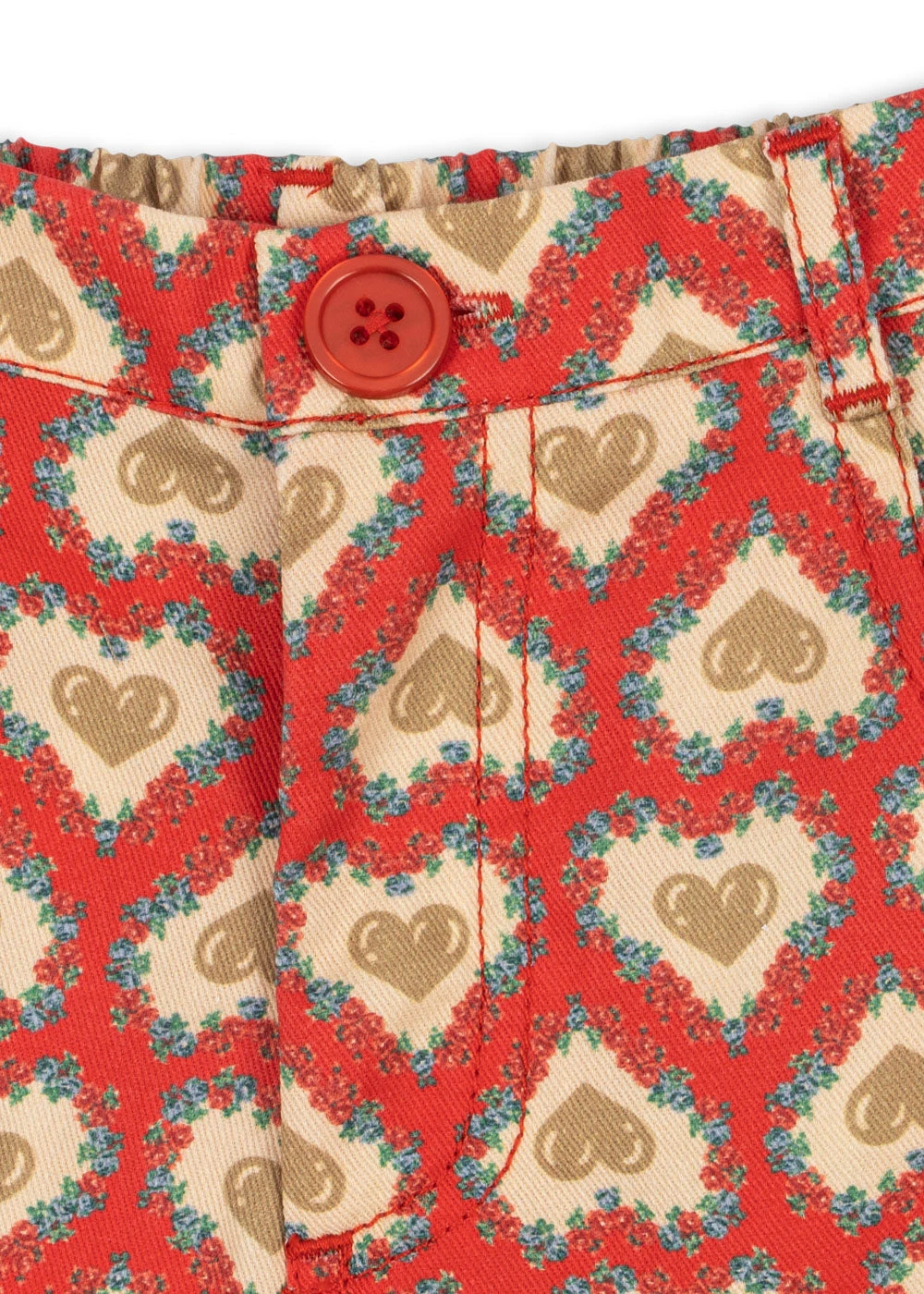 Short en coton sergé doux. Conçu pour avoir une coupe légèrement plus courte avec une taille partiellement élastique.