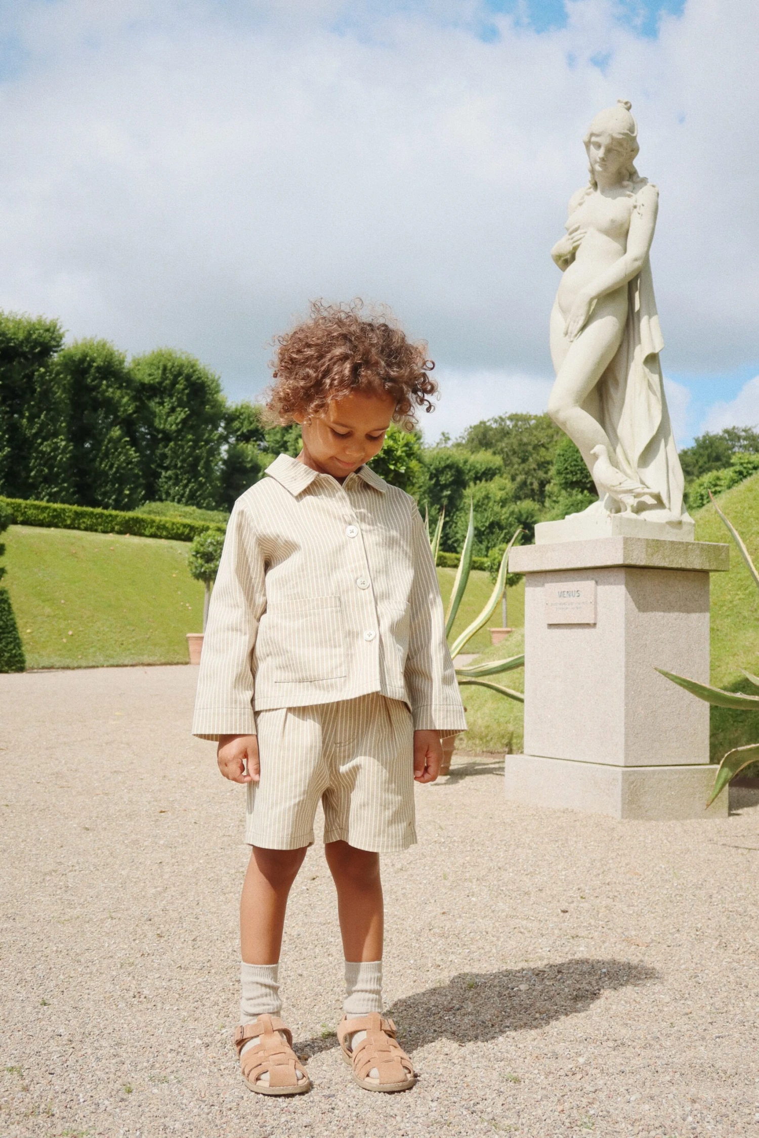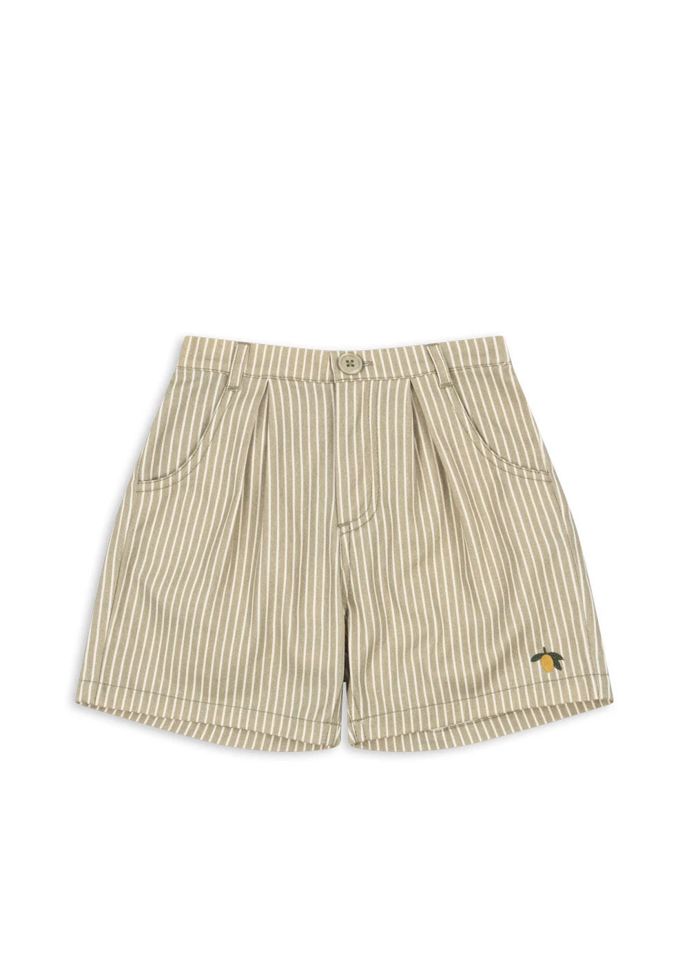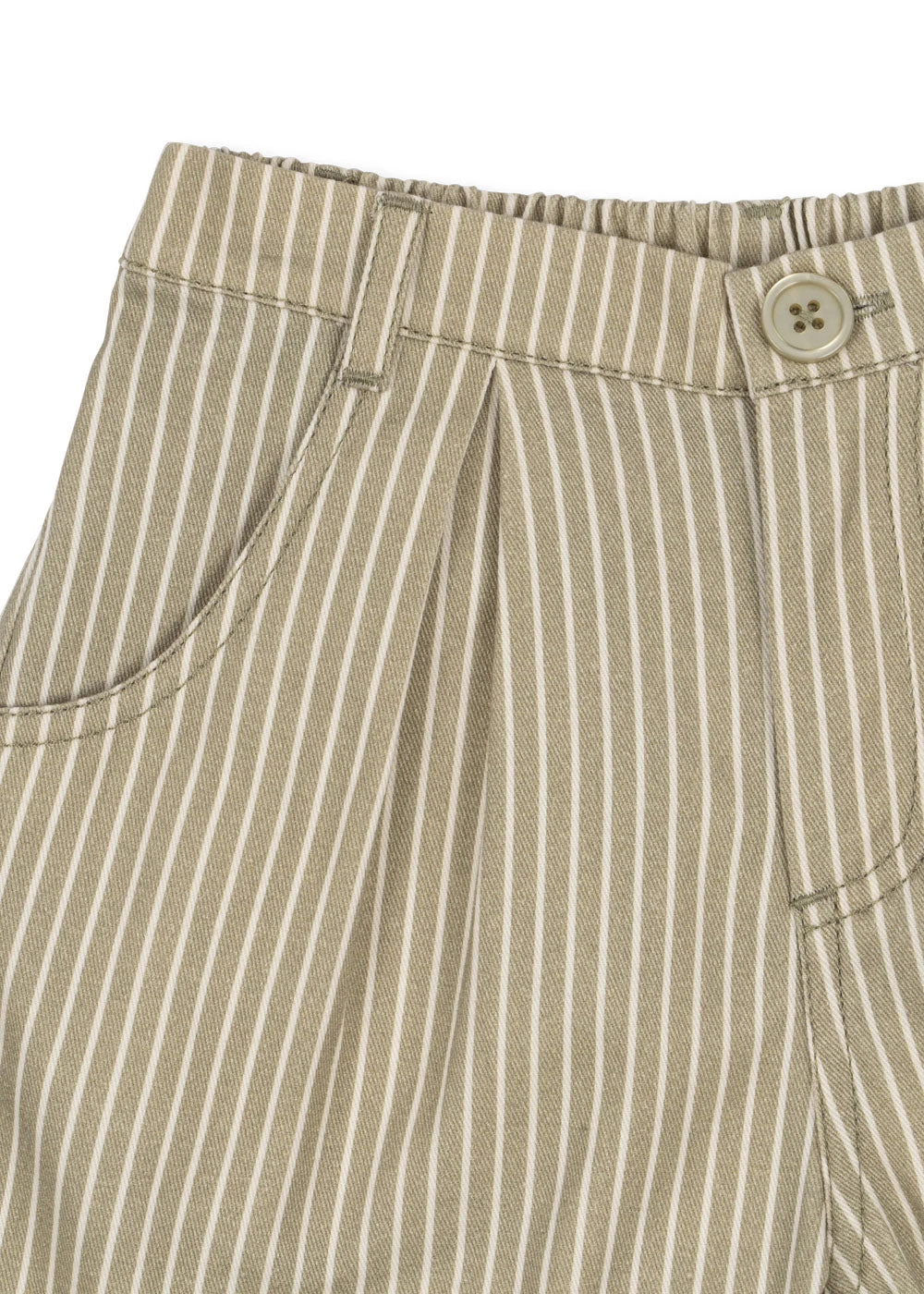 Short en coton sergé doux. Conçu avec des poches avant, des passants de ceinture et une taille partiellement élastique.
