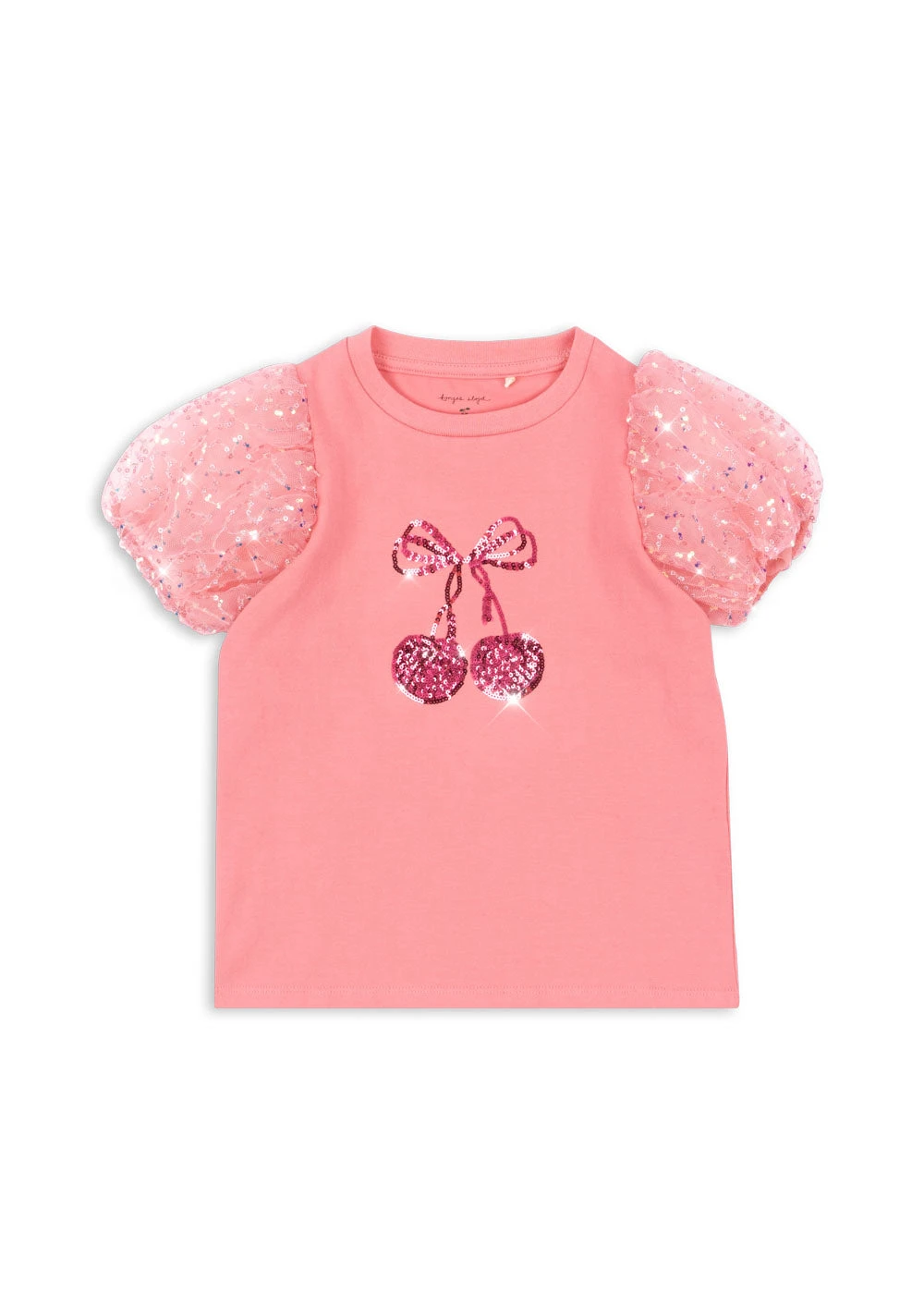 T-shirt ballerine en coton conçu avec des manches bouffantes en tulle ornées de paillettes et de sequins