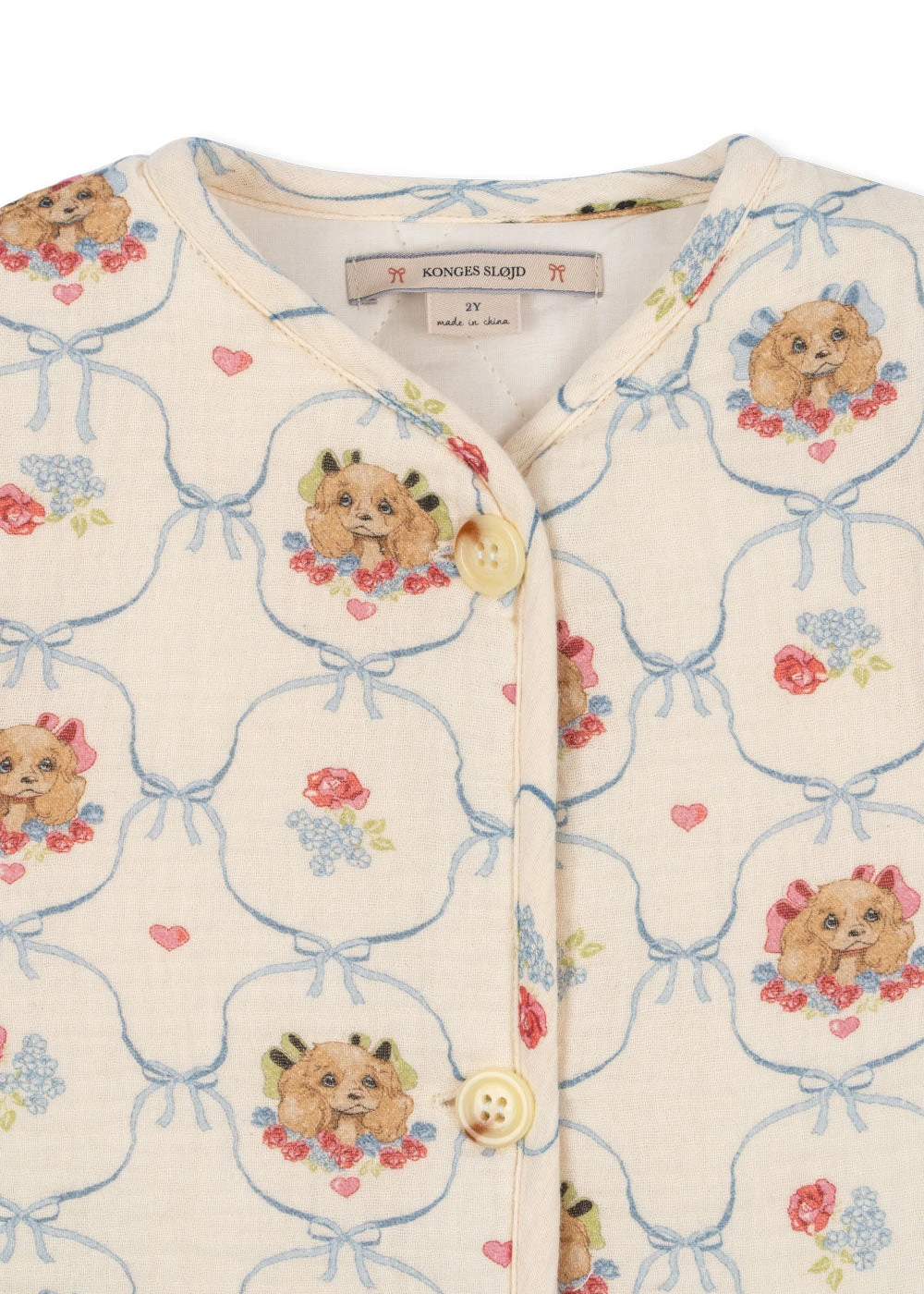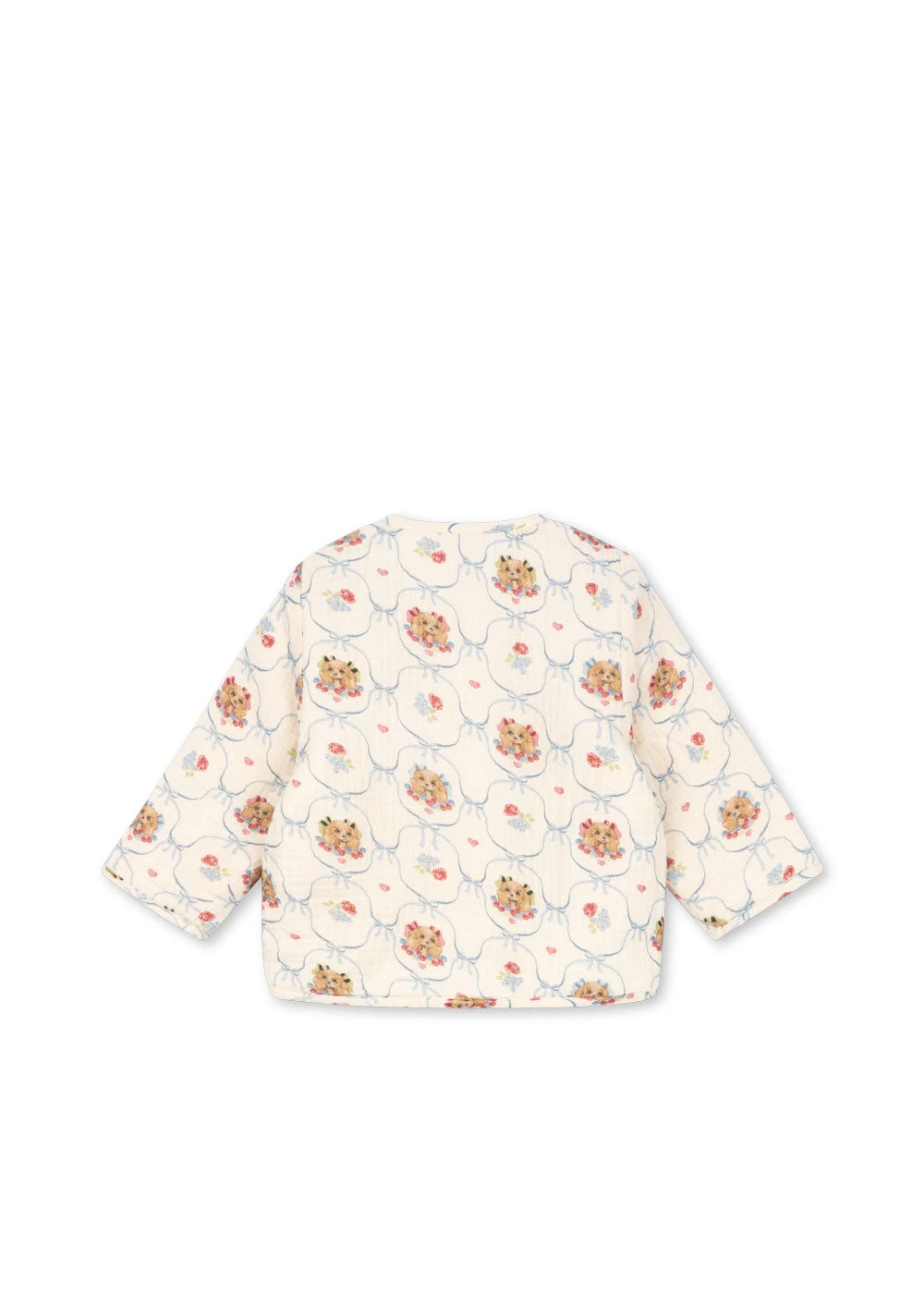 Veste matelassée en mousseline de coton toute douce. Fermeture par boutons décoratifs en corne.